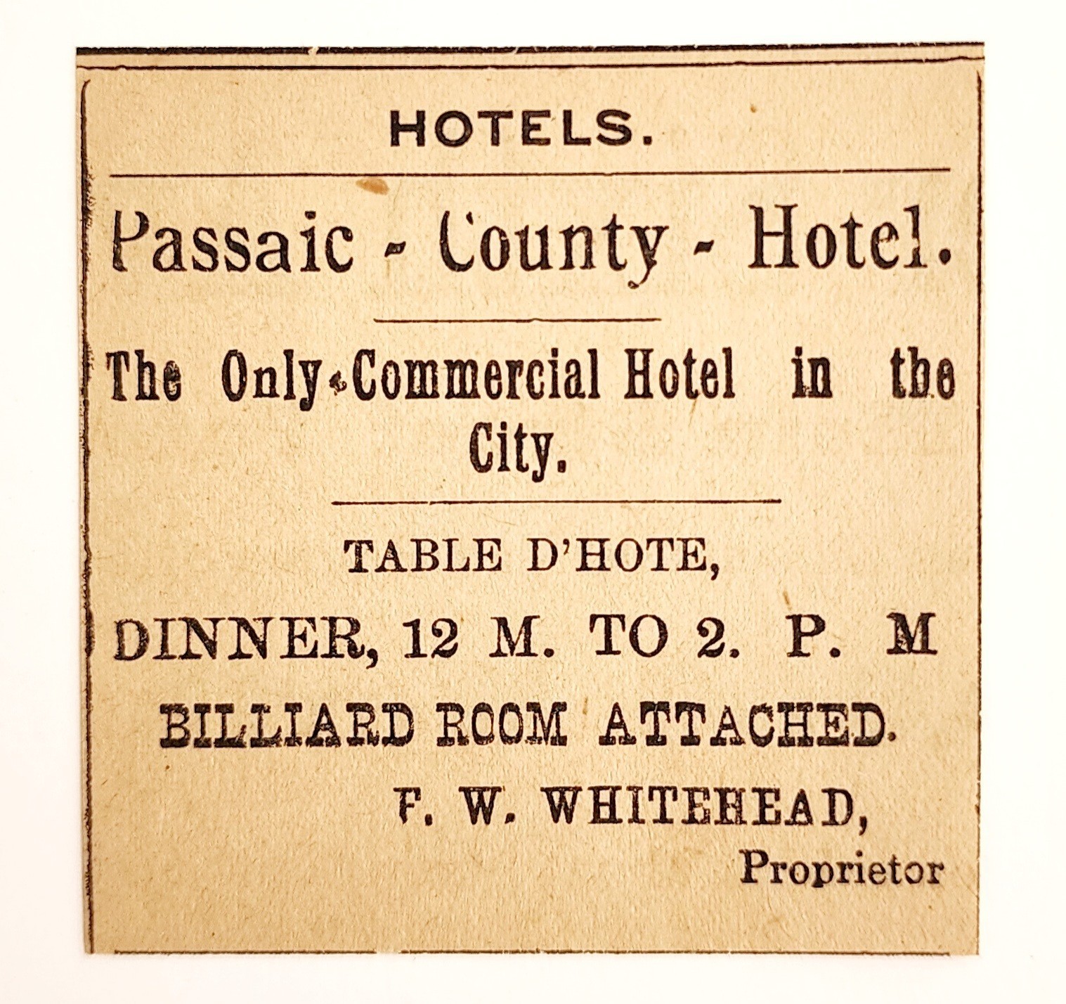 1895 Passaic County Hotel Victorian Advertisement New Jersey Whitehead F13M