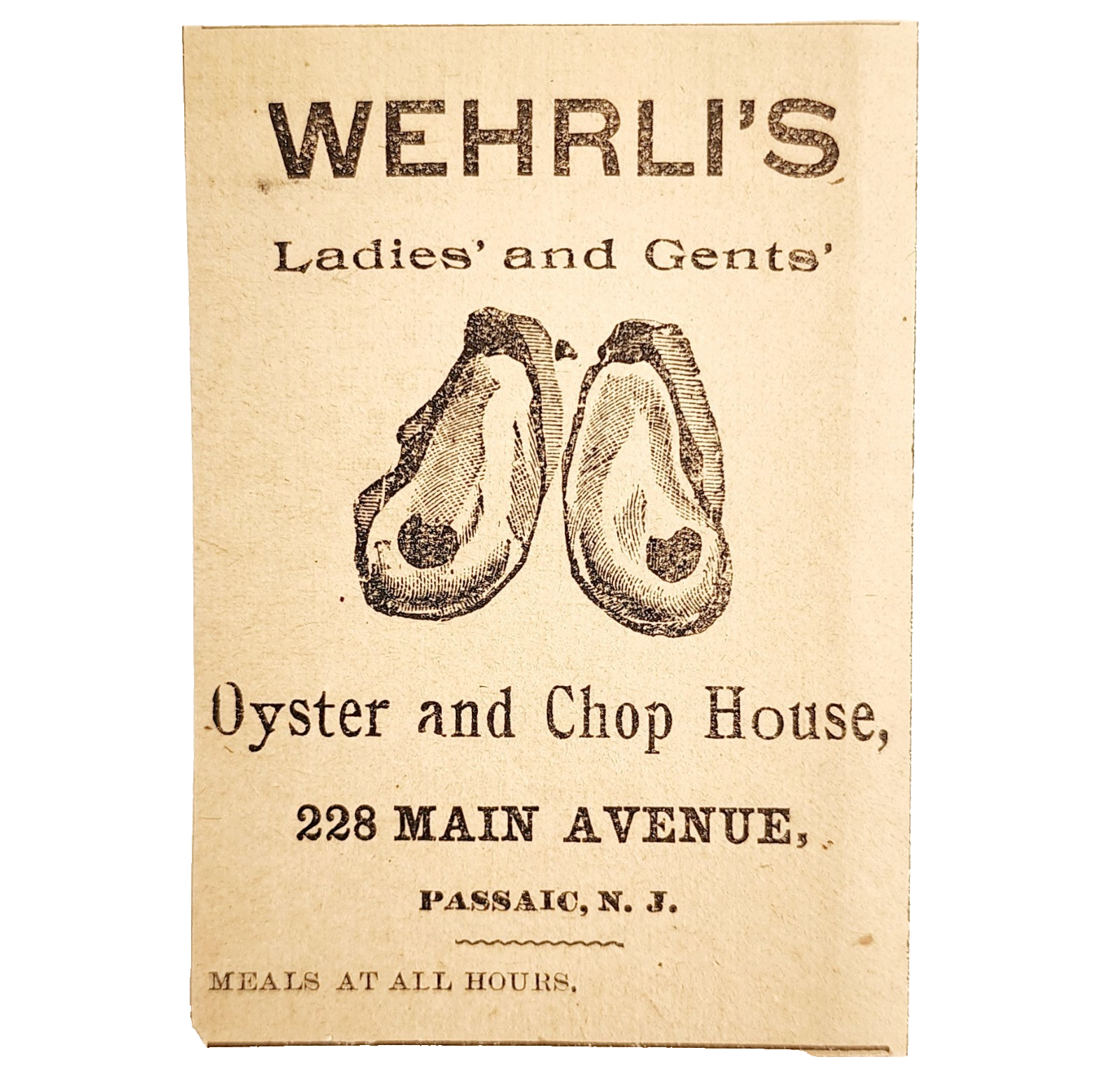 1895 Wehrli's Restaurant Victorian Advertisement Oyster Chop House Passaic F13L