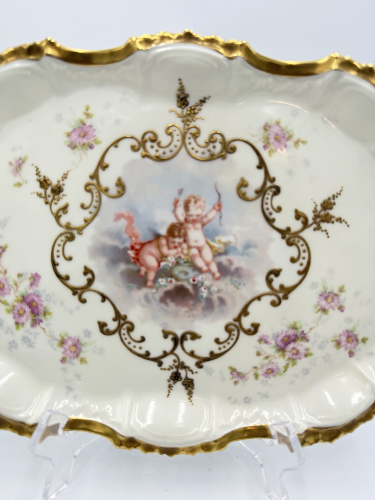 Antique AK Limoges France Cupid Cherubs Gilded Large Rectangle Platter Porcelain
