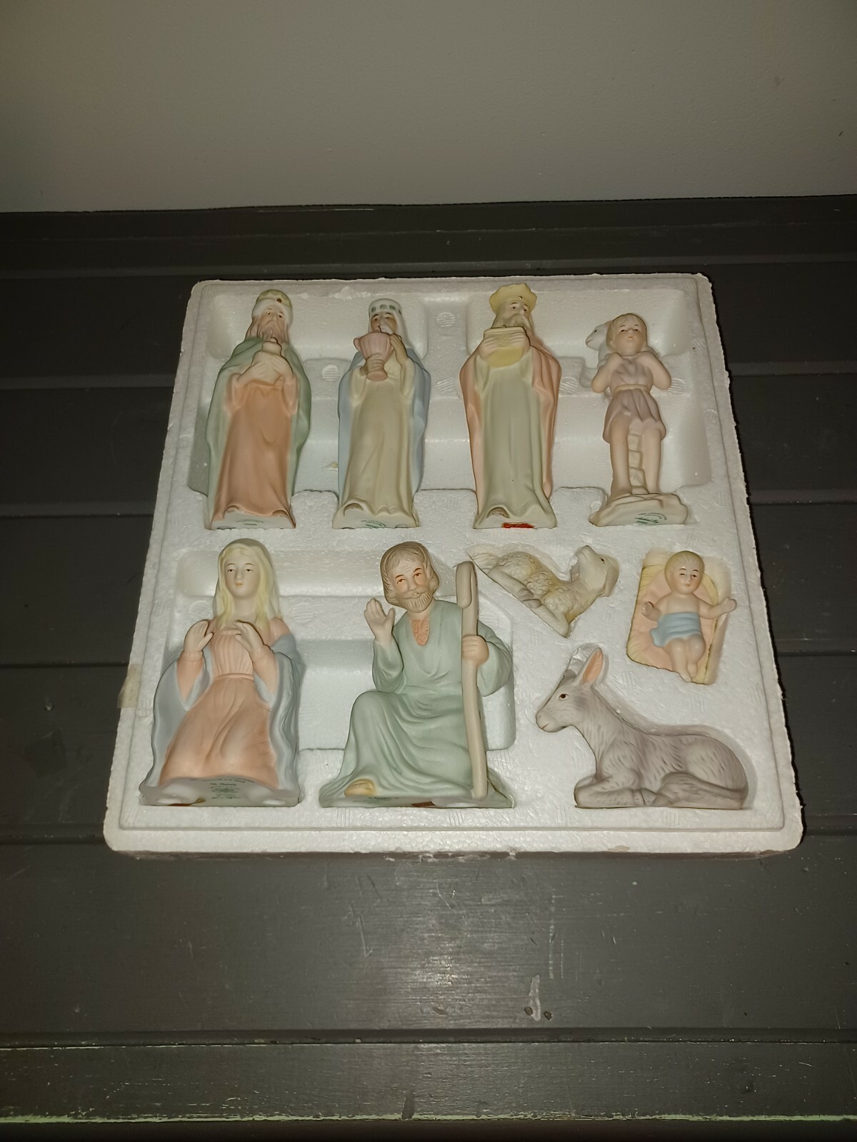 Beautiful Lefton "The Christopher Collection" 9 Piece Nativity Full Set Vintage