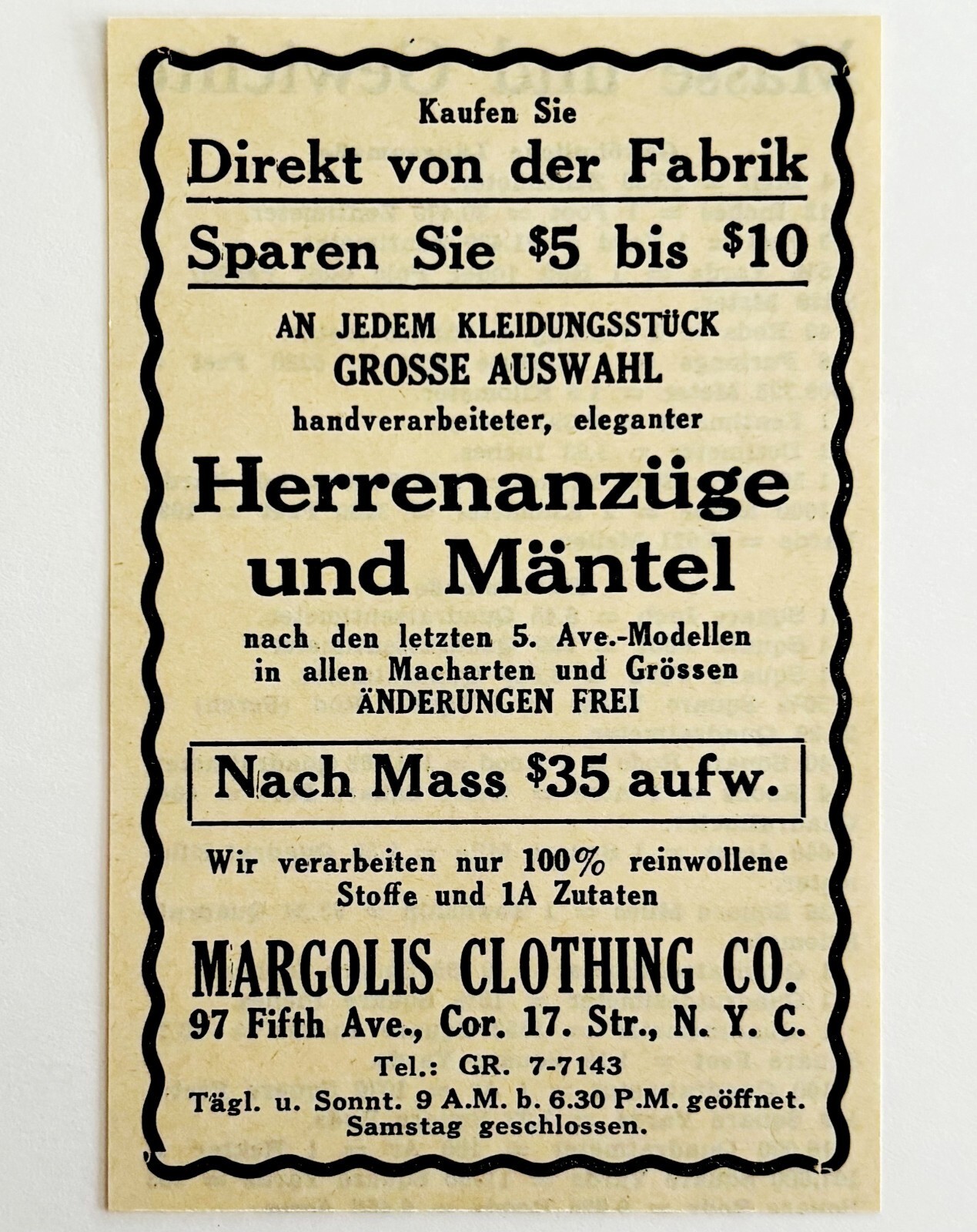 1945 WW2 German-USA Fashion Advertisement Margolis Men's Clothing Store NYC C94C