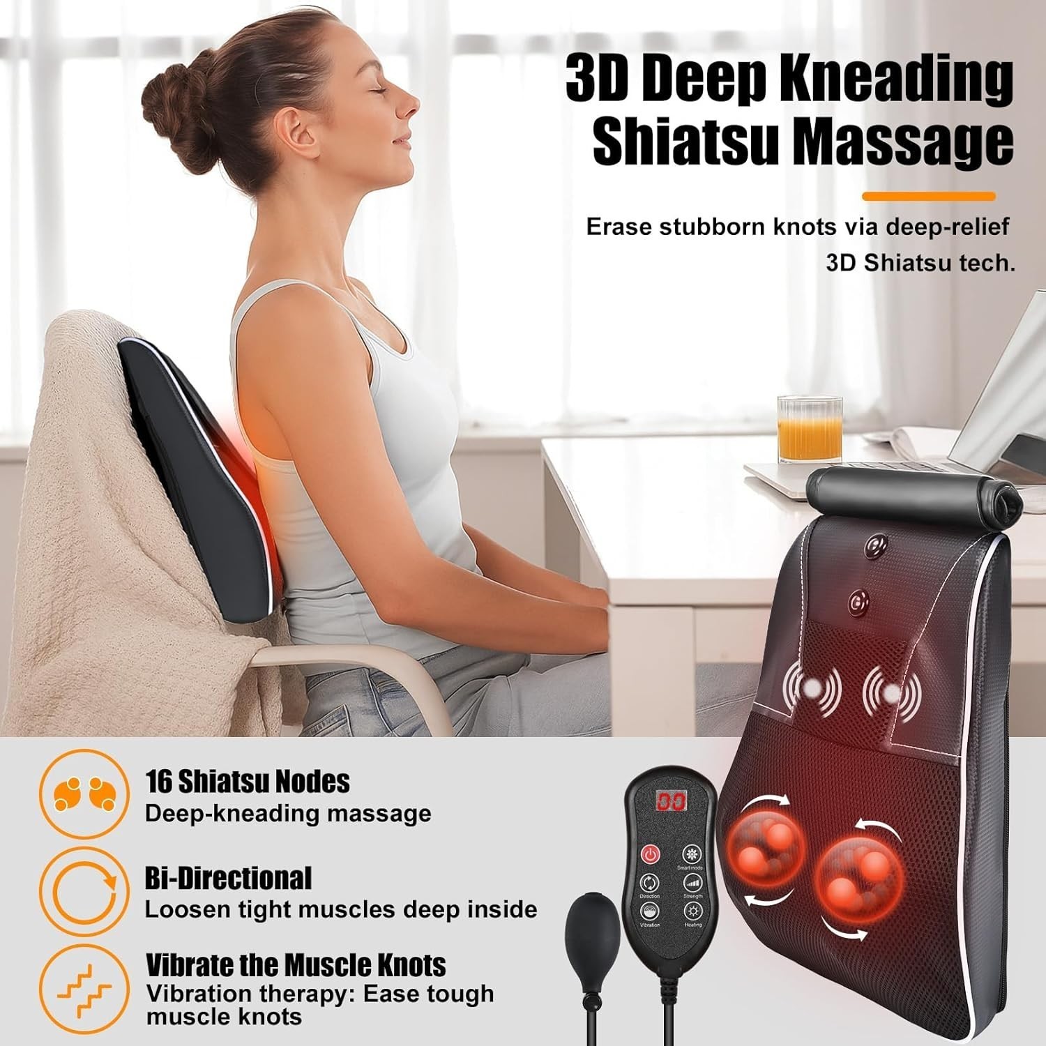Shiatsu Neck Back Massager with Heat, 3D Deep Tissue Kneading Massage Pillow for Pain Relief