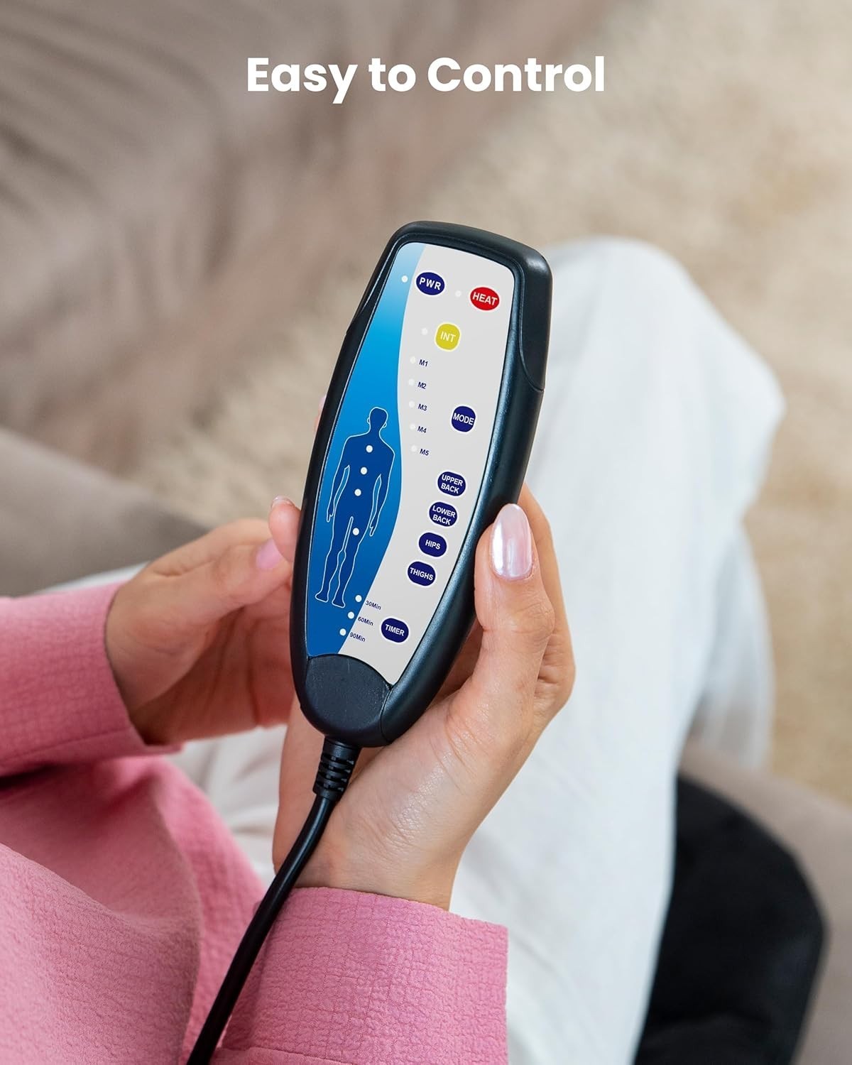Set massage sessions with 30-, 60-, or 90-minute timer options. Control your massage duration for a quick work break or relaxing wind-down before bed. Convenient and user-friendly, perfect for daily use or gifting.