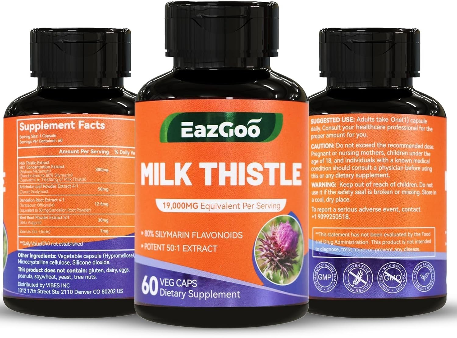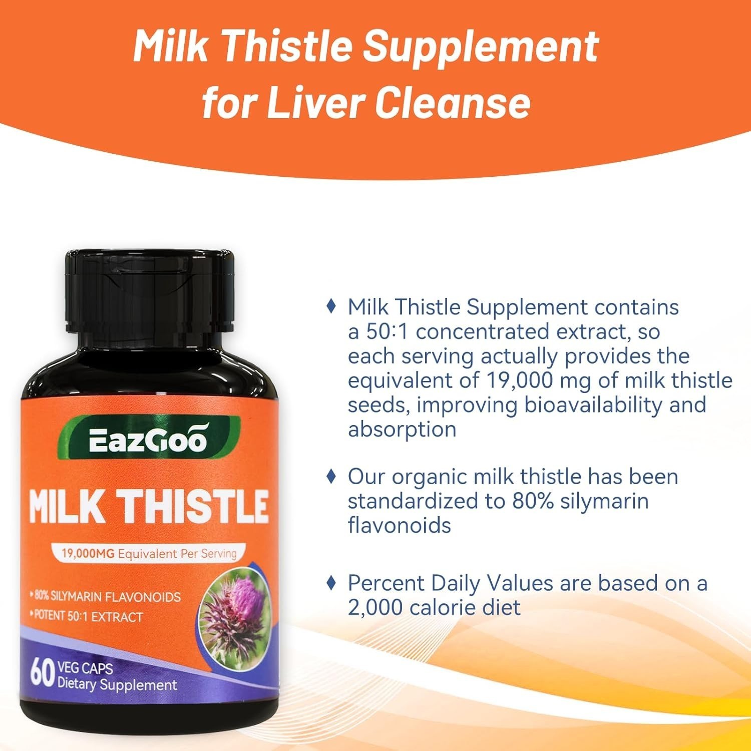 Milk Thistle Capsules 19000mg 50X Concentrated Liver Support Supplement Vegan Non-GMO