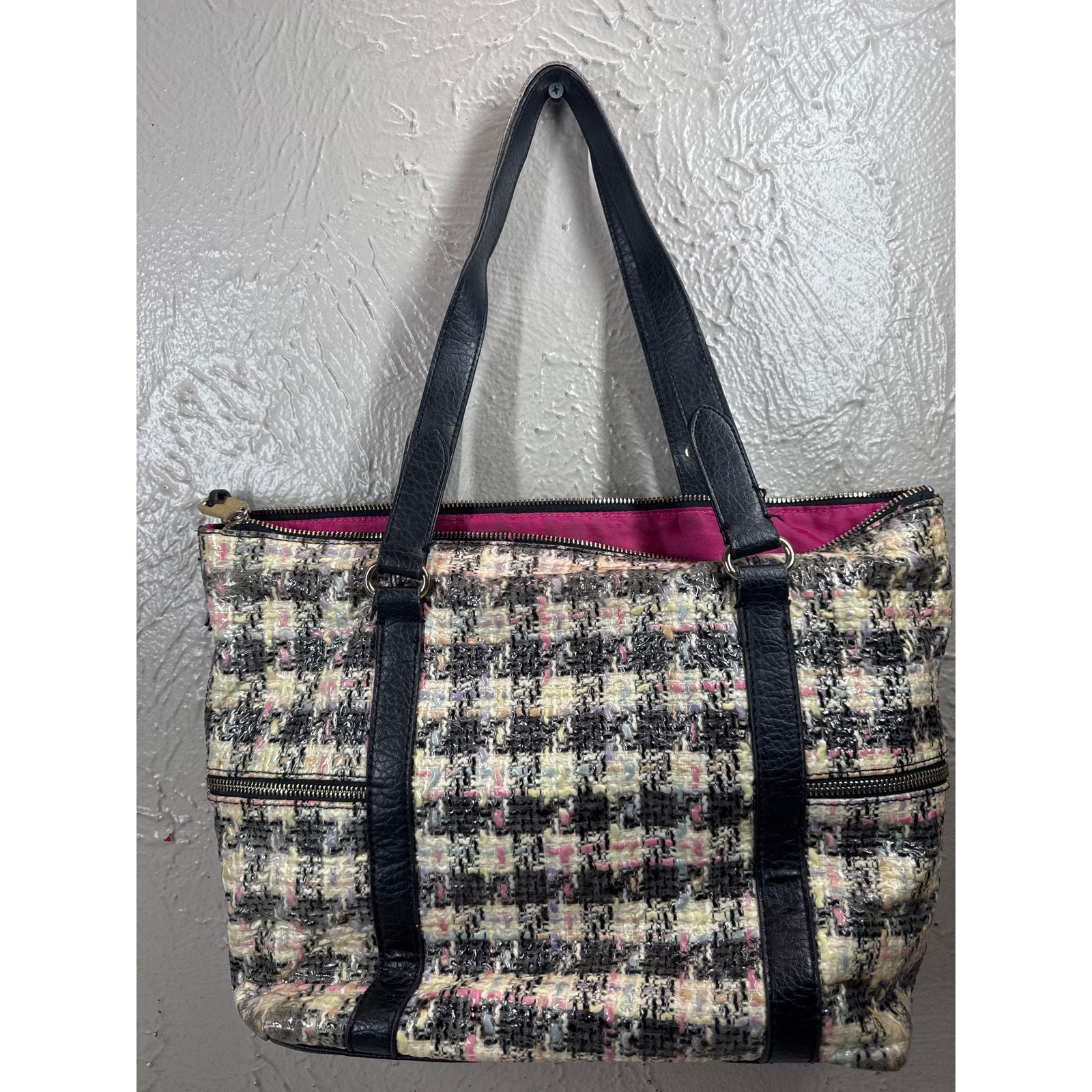 Vintage Y2k Juicy Couture Tote Large Tweed Wax Coated Handbag Vegan Leather