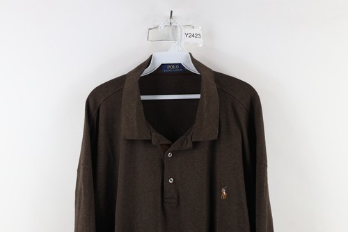 Ralph Lauren Mens 4XLT Soft Touch Long Sleeve Rugby Polo Shirt Heather Brown