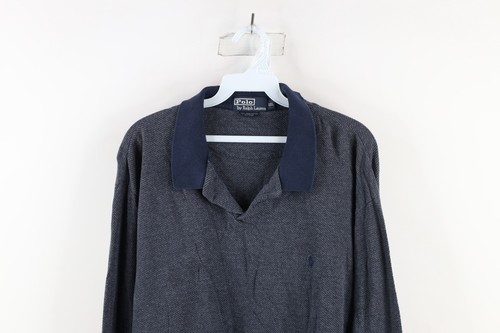 Vintage 90s Ralph Lauren Mens 2XL Distressed Knit Long Sleeve Rugby Polo Shirt