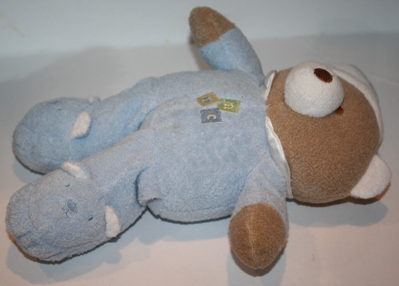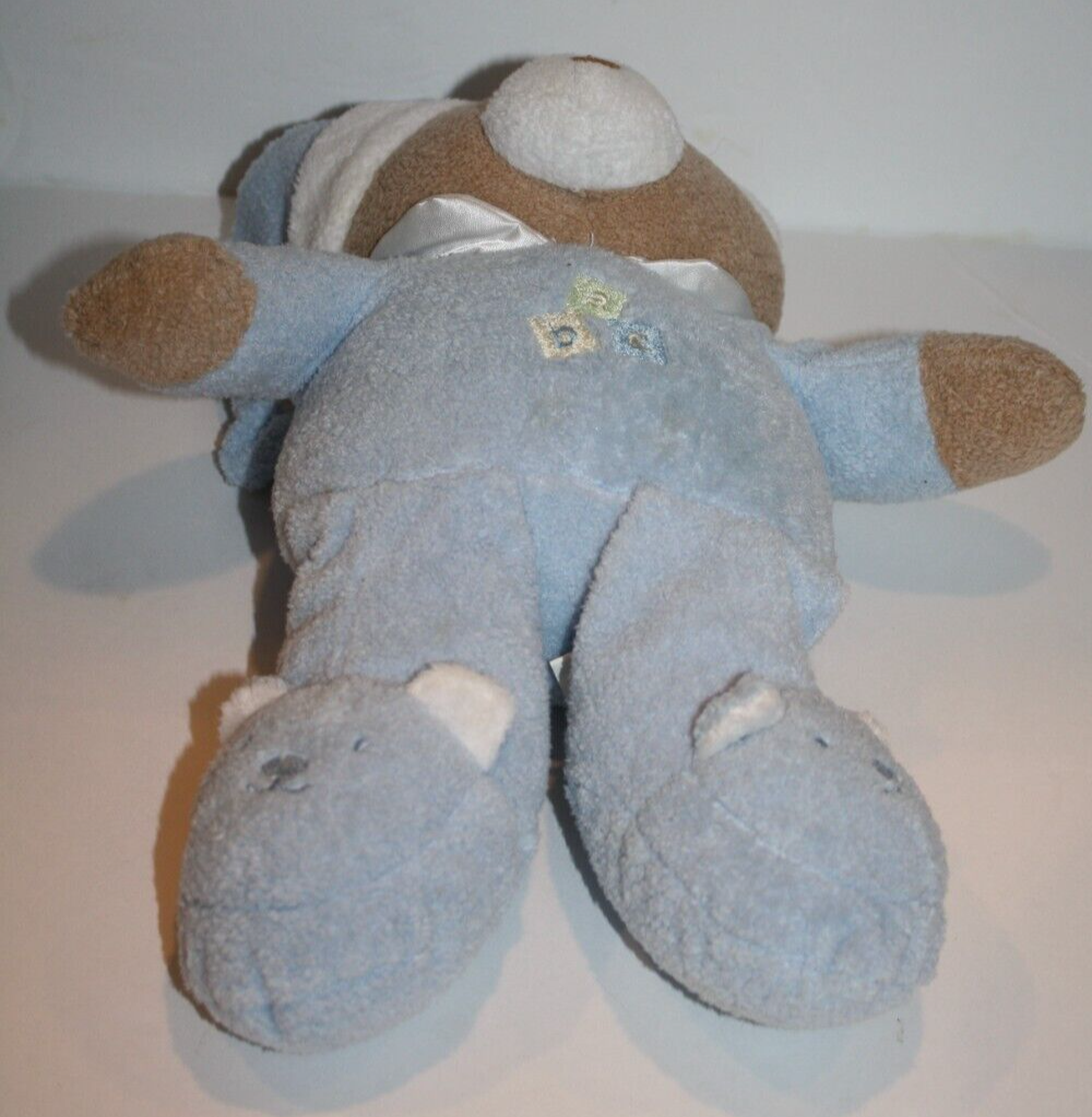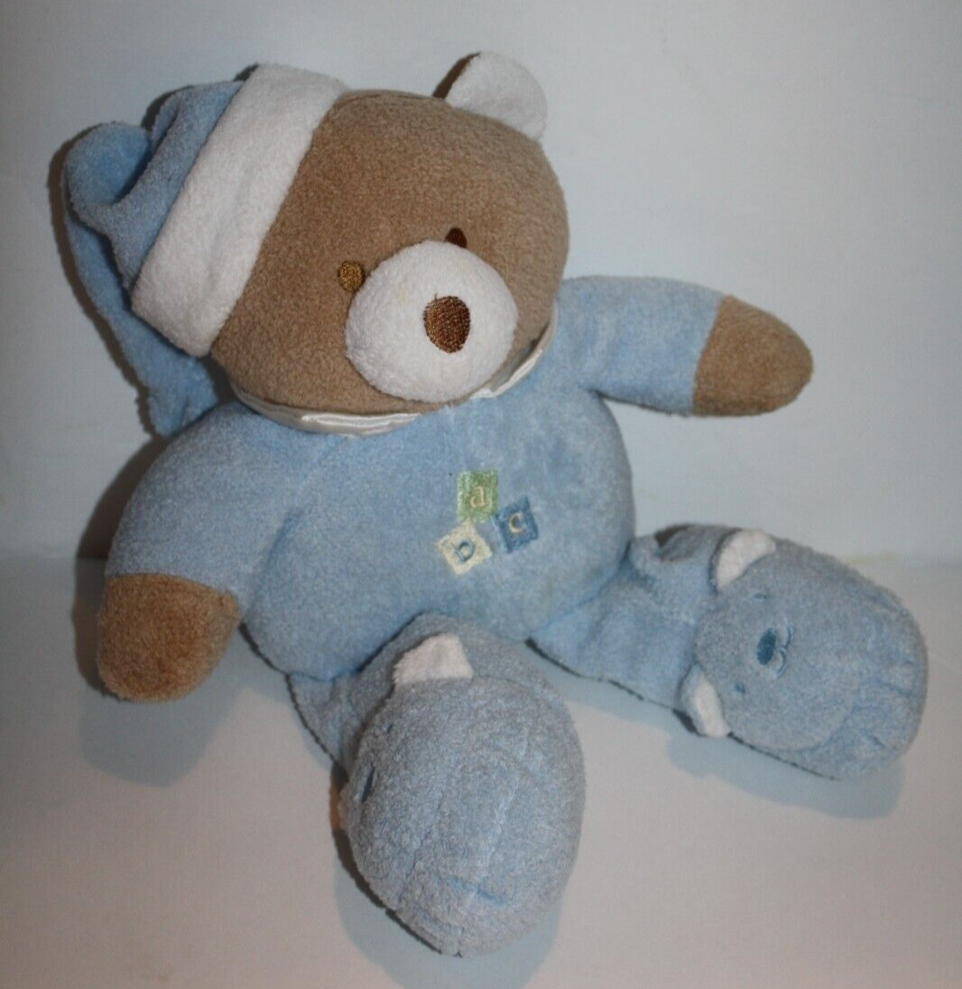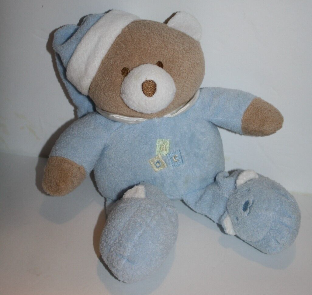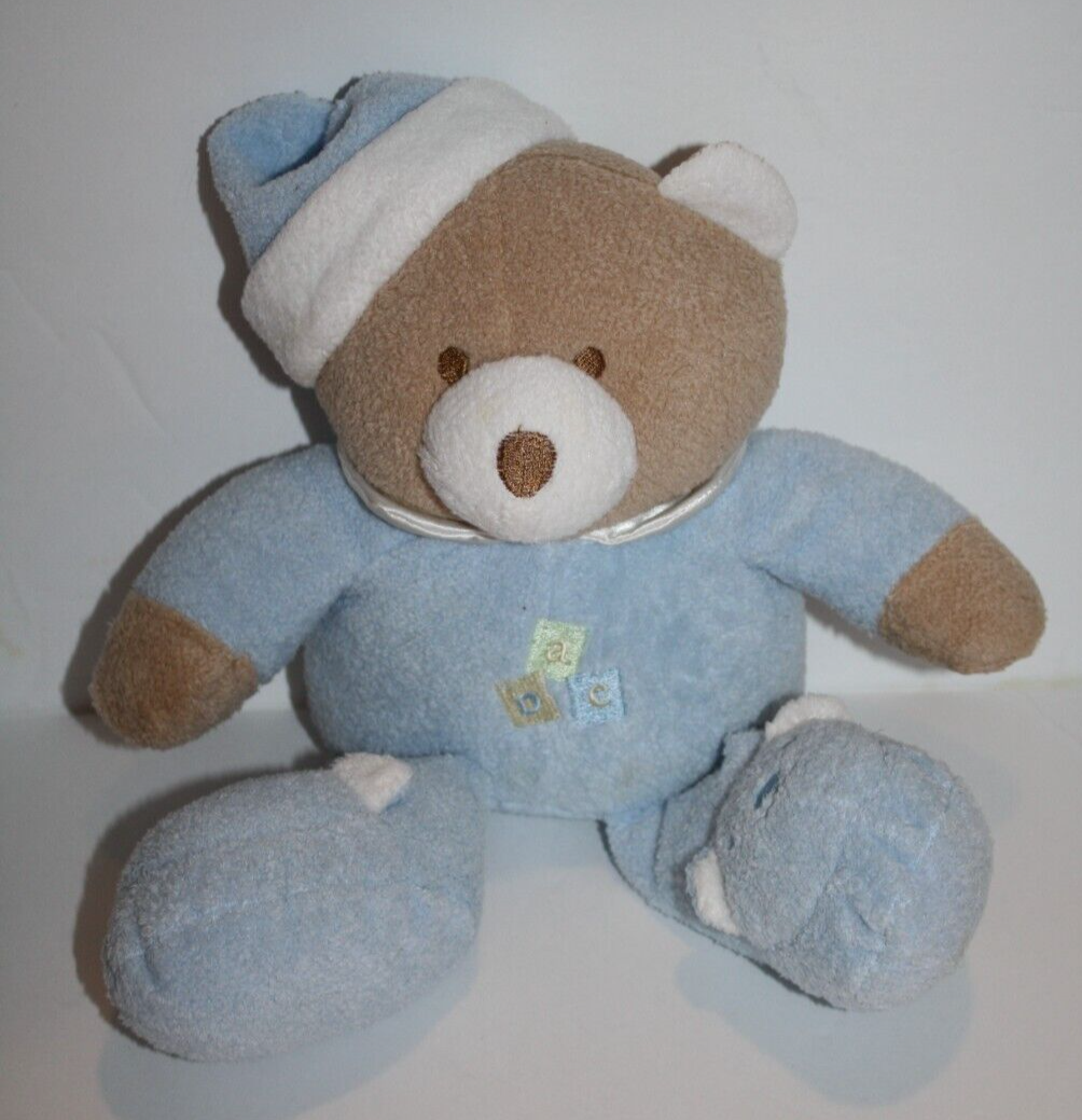 Blankets Beyond, Teddy Bear, ABC, Approx 10 inch, Blue PJs, Slipper feet, Tan and White Plush, Stuffed Animal, wearing Slippers, Soft Toy, Lovey