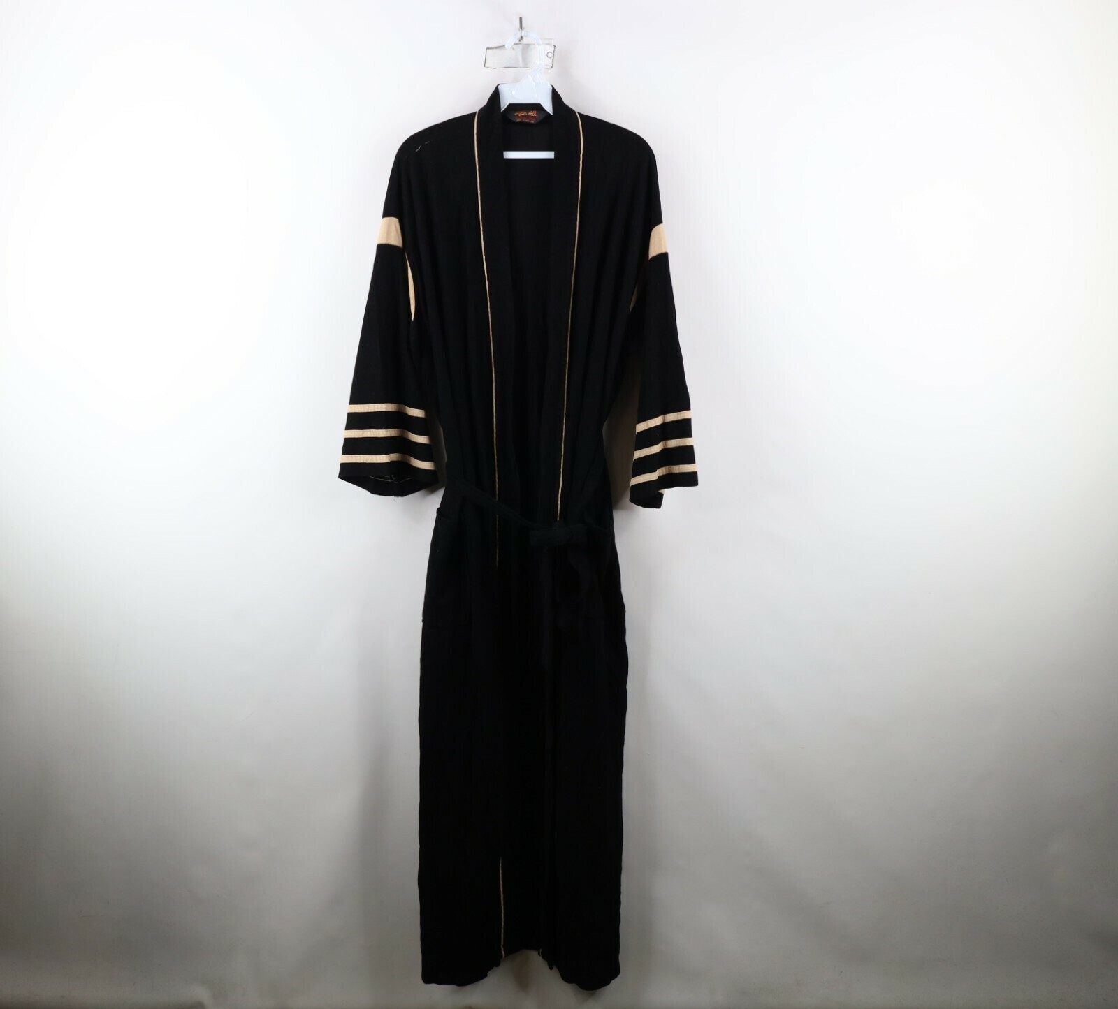 Vtg 60s Streetwear Mens OSFA Striped Velour Belted Bath Robe Smokers Robe USA