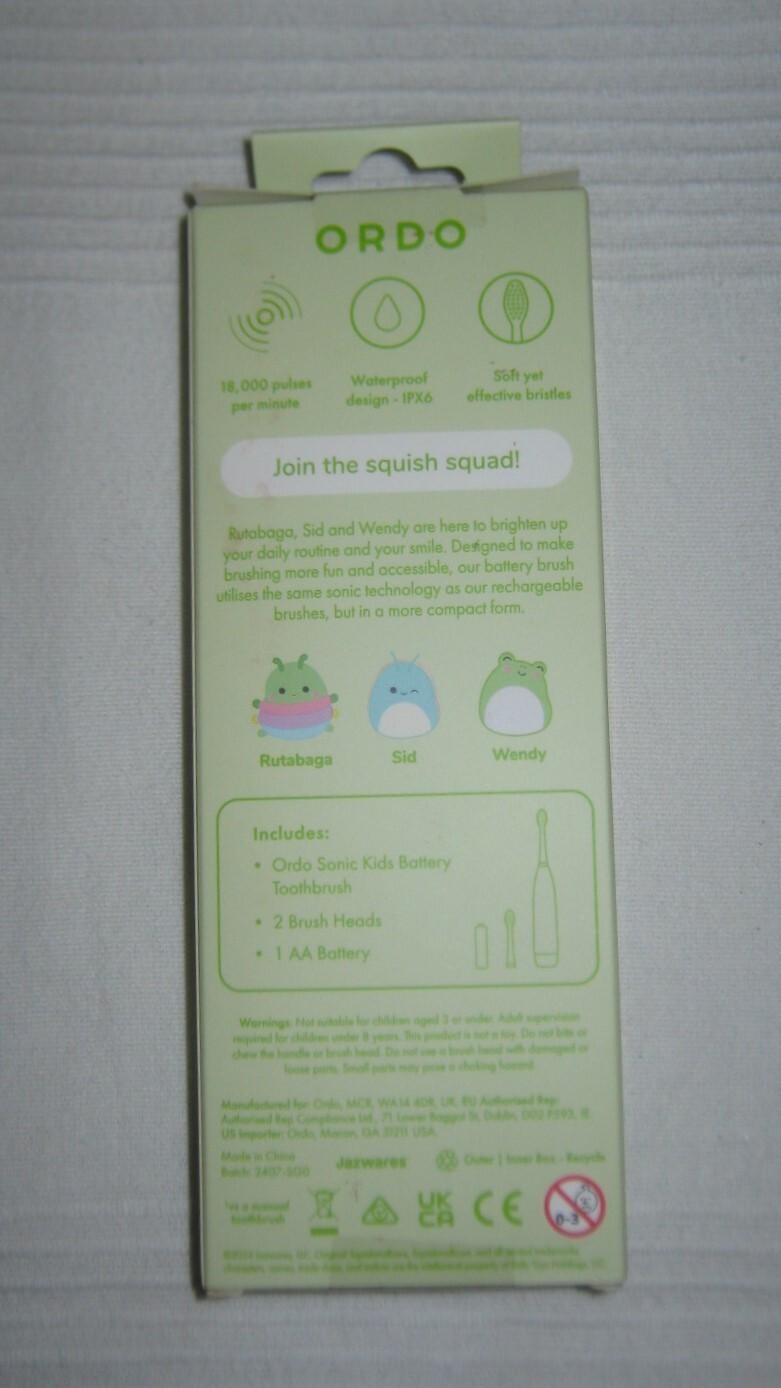 Ordo Original Squishmallows Sonic Kids Battery Toothbrush Rutabaga Green New
