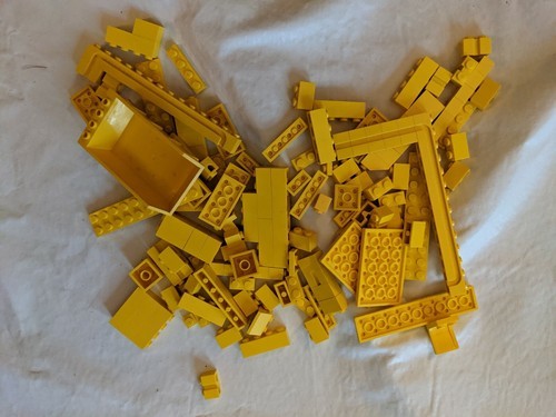 A vendre est un lot Lego de 150+ carreaux jaunes classiques vintage lisses plates longues imprimees