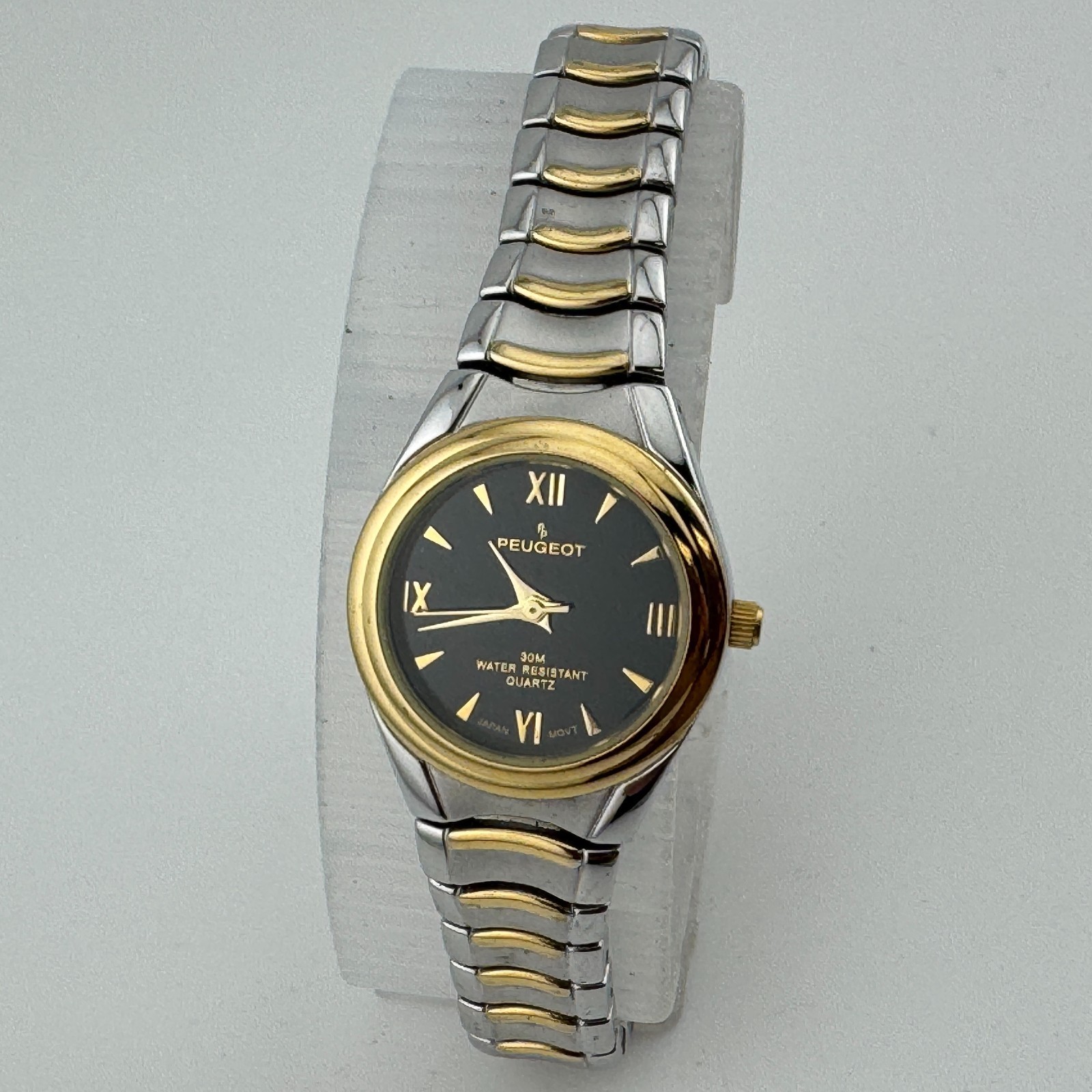 Peugeot Quartz Watch Women 30m Dual Tone Black Japan Analog New Battery 6.5"