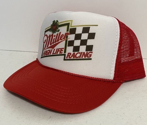 Vintage Miller High Life Racing Trucker Hat snapback Unworn Red Cap NASCAR Hat