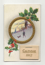 Christmas Series No. 28 Embossed Holly with Complete 1912 Calendar Attached NICE