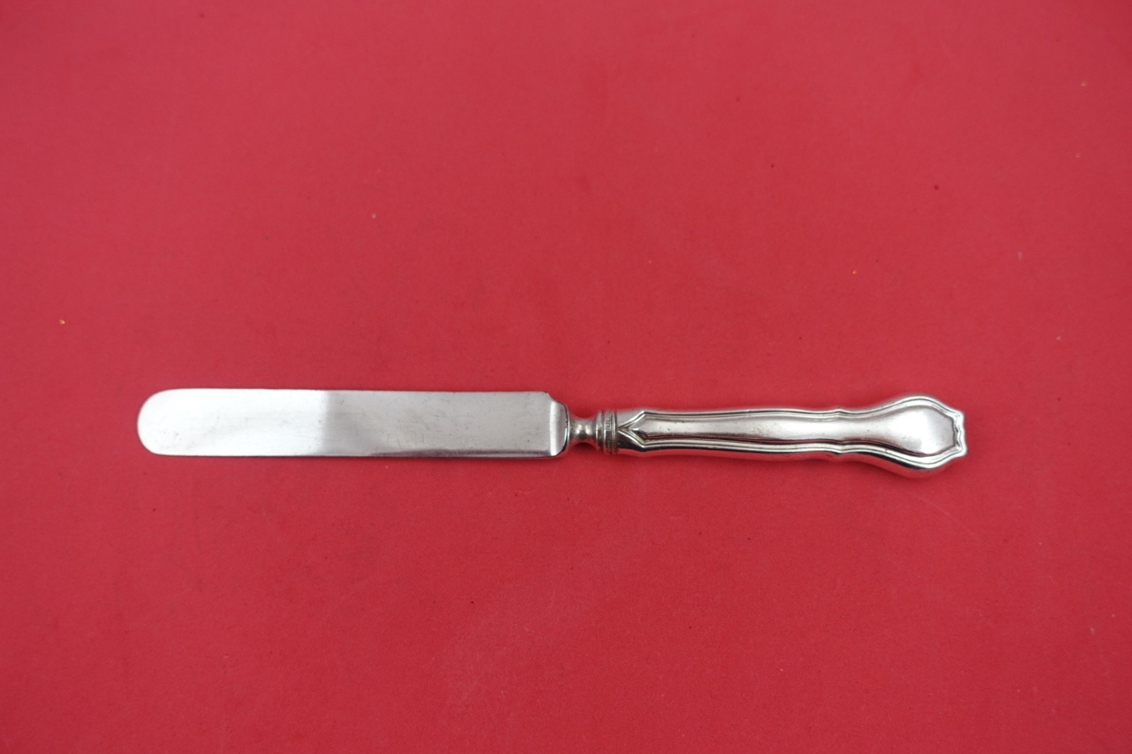 Sterling Silver hollow handle with silver-plated blunt blade, Junior Knife 7 5/8" in the pattern Nile by Wallace . It is monogrammed (monos vary) and is in excellent condition.