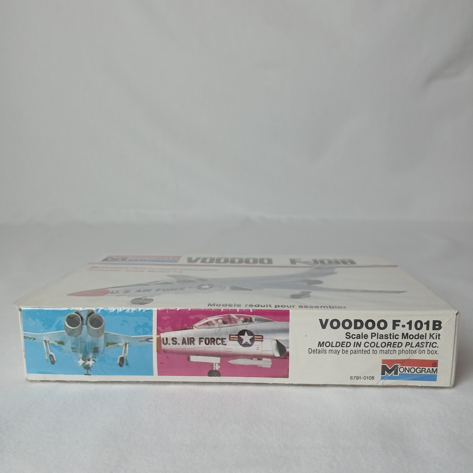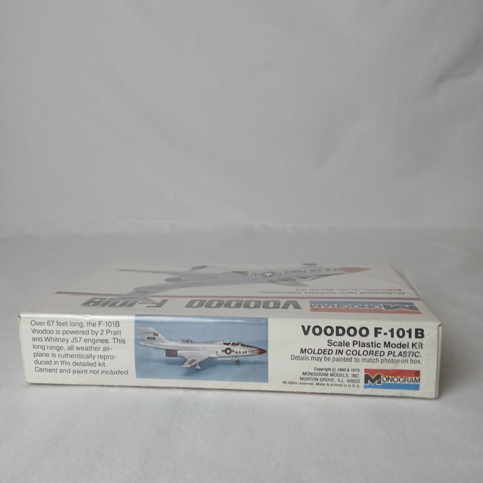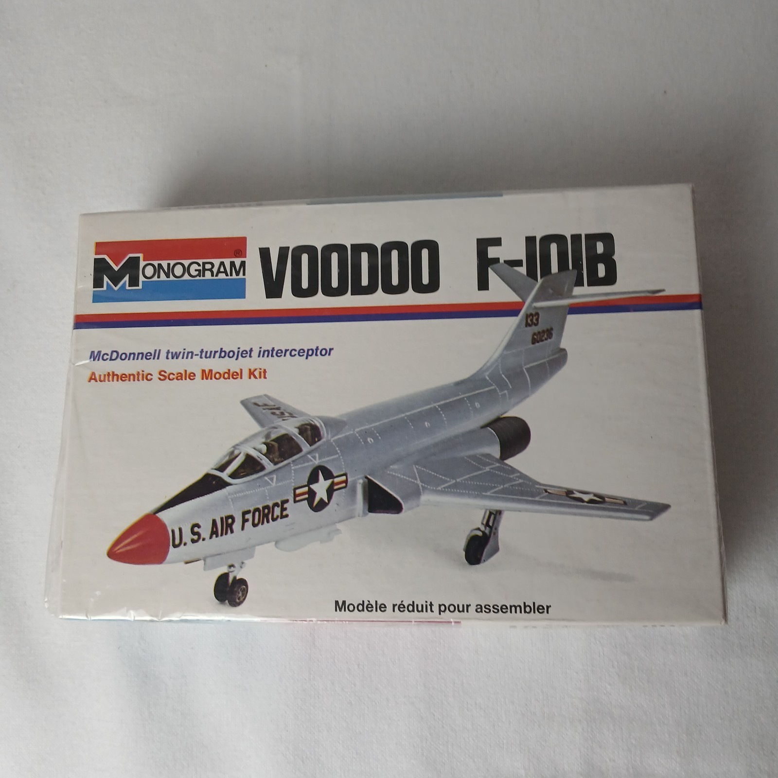 This listing is for an original Monogram model kit featuring the Voodoo F101-B Fighter plane. This item is in the original sealed box. The model kit is complete with instructions. The model scale is not listed on the box. Glue and paint are not included. This item is recommended for ages 8 to adult.
