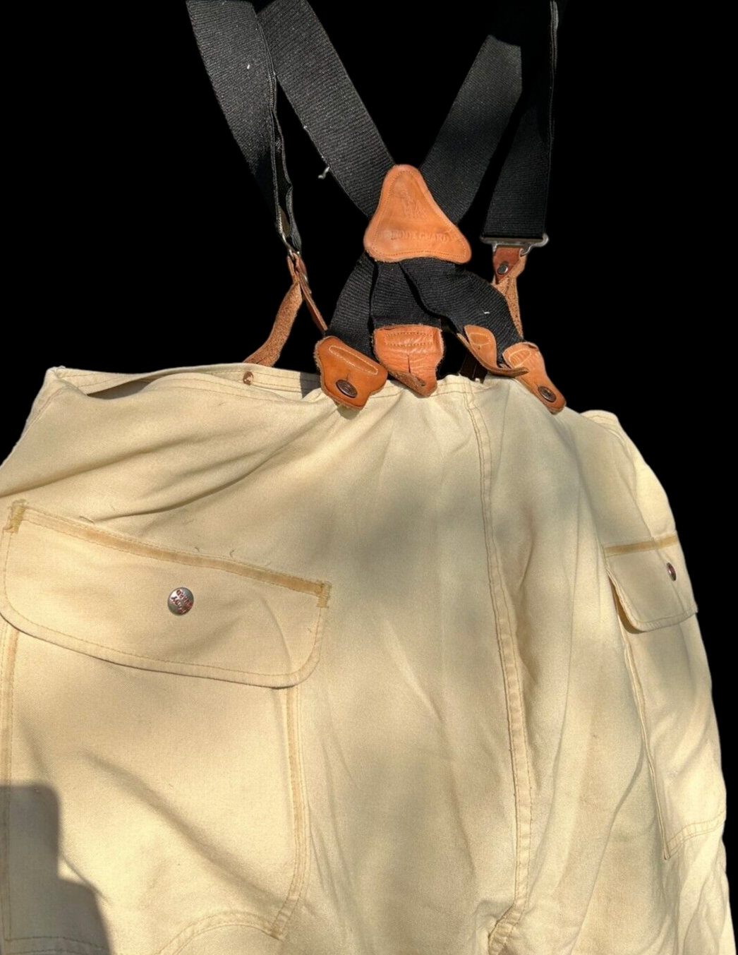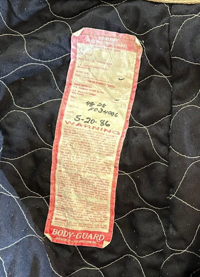 body guard fire resistant turn out pants with suspenders vintage (1986) 48 x 28 neoprene coated Poly/Cotton