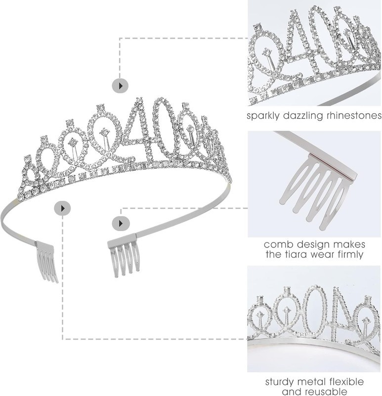 40Th Birthday Sash Rhinestone Tiara Set, 40Th Year Old Birthday Gifts Party Decorations for Women