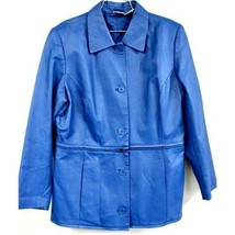 Vintage Newport News Easy Style convertible leather jacket, women?s size Large, in a bold turquoise cadet blue leather. A unique 2-way design allows the piece to be worn as a midi-length thigh jacket or a cropped waist jacket by zipping off the bottom panel.
