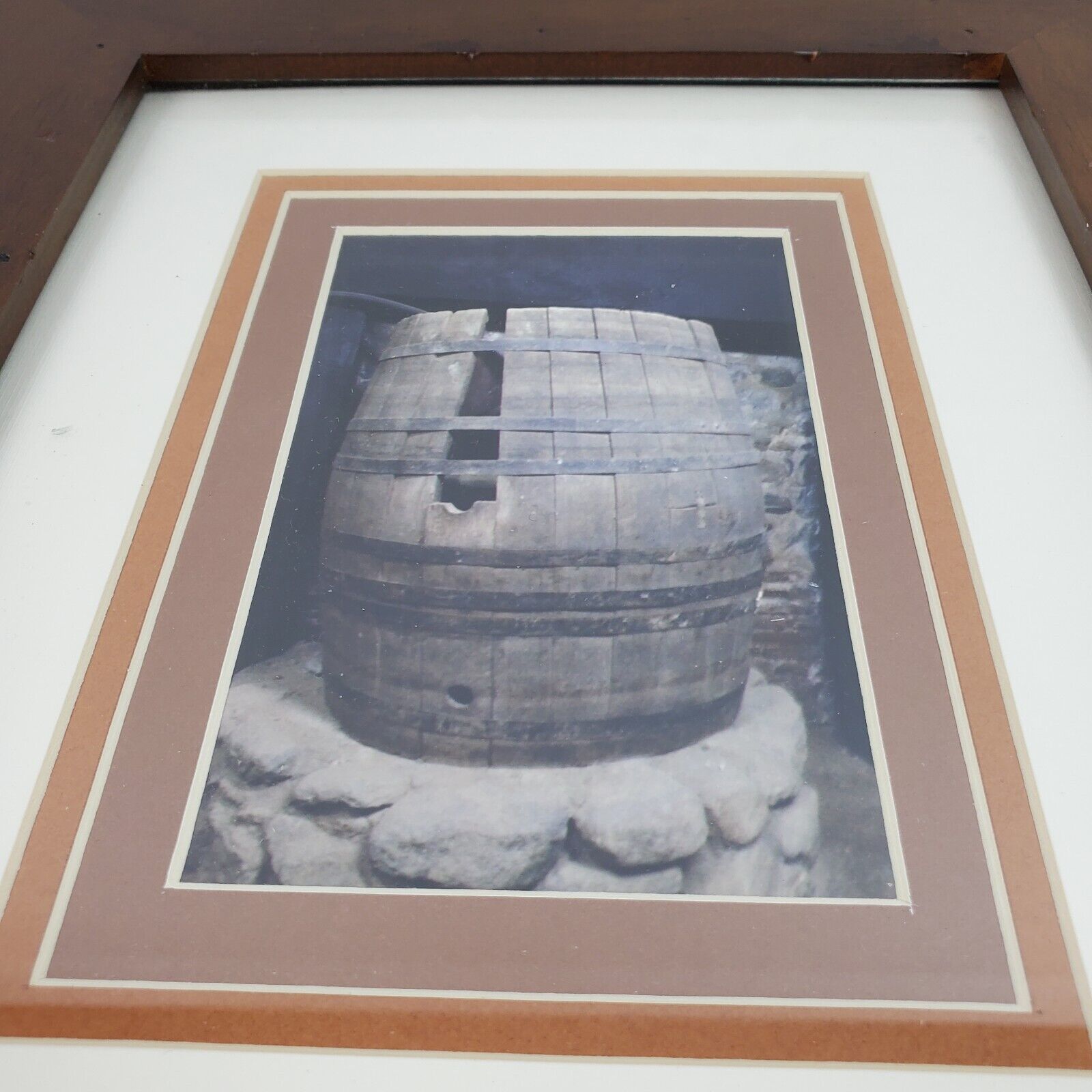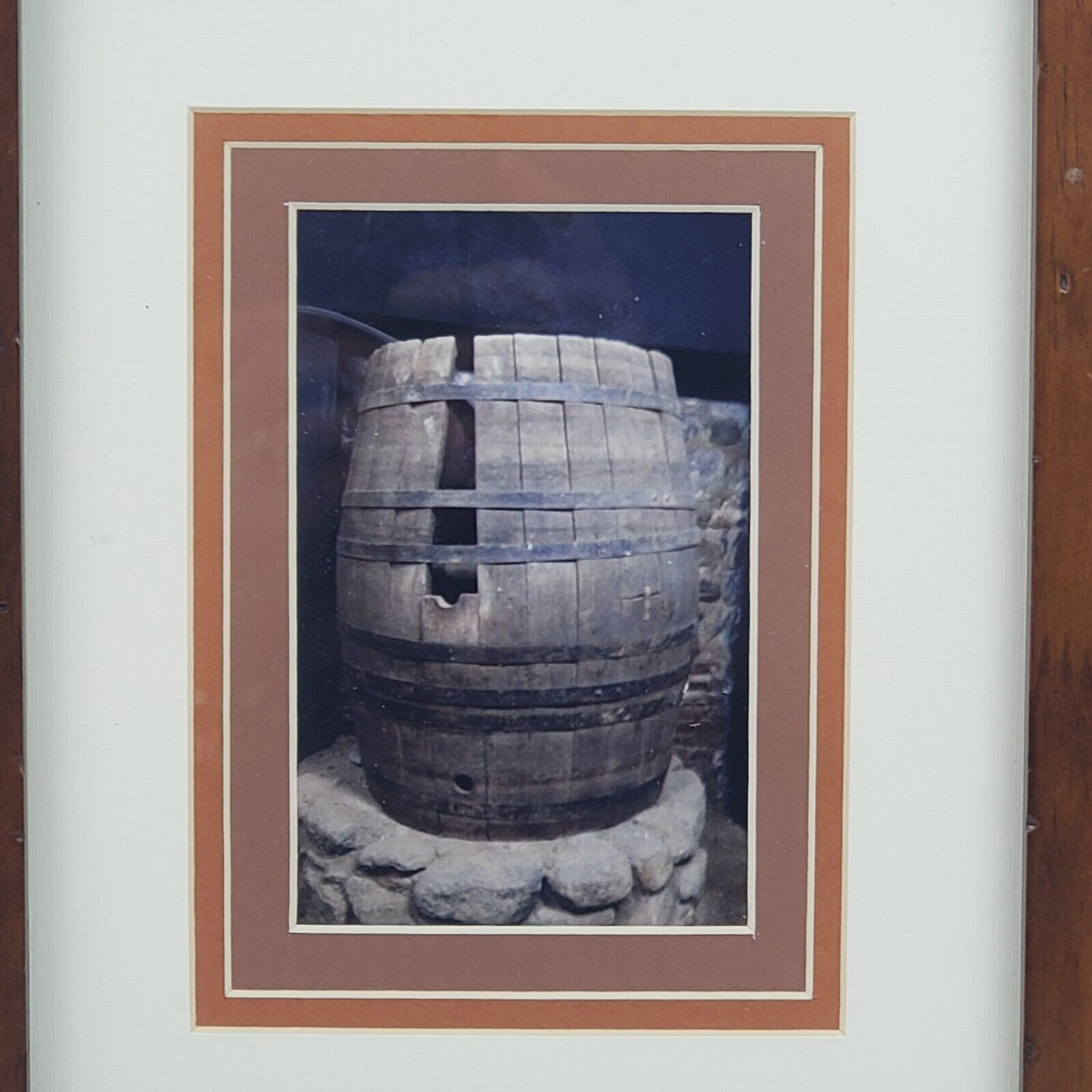 Vintage Framed ART Louie Reyes Mission San Fernando CA Photo Winery Barrel