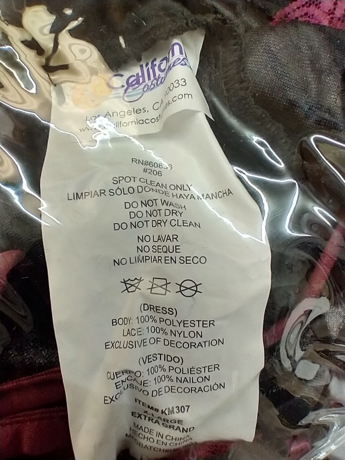 NOTE: Listing is for items listed as included only. Some accessories may be pictured but are not included. All are new in package. Costumes may have some wrinkles or creases from being folded or in package, please see care instructions before trying to iron, etc. A quick and easy way to help eliminate wrinkles is by using a spray bottle form of fabric wrinkle releaser (not included). New in package items may have long / loose threads or strings that may require trimming, these are not considered defects. For Costumes, please refer to chart in this listing as reference for estimating size, always choose a size larger if borderline. Individual results will vary. Please note everyone's body is made different and costumes may not fit as they fit the models in the photos. If you are unsure of the size you need or if your in between sizes, please choose the larger size. These are costumes and should fit comfortably. All sizing information is provided by manufacturer in U.S. sizes. International buyers please know size conversions for your country. International buyers purchase sized items at their own risk. Some Features, Packaging, Colors and Texture may vary slightly. Manufacturer may change some Features, Packaging, Colors and Textures so actual costume may vary slightly from picture. Any known differences will be stated in description. No Returns or Exchanges on Costumes. As is New in Package. Exact colors cannot be guaranteed. Monitors and screens display colors differently, please keep this in mind. I have no way of knowing what you are seeing.