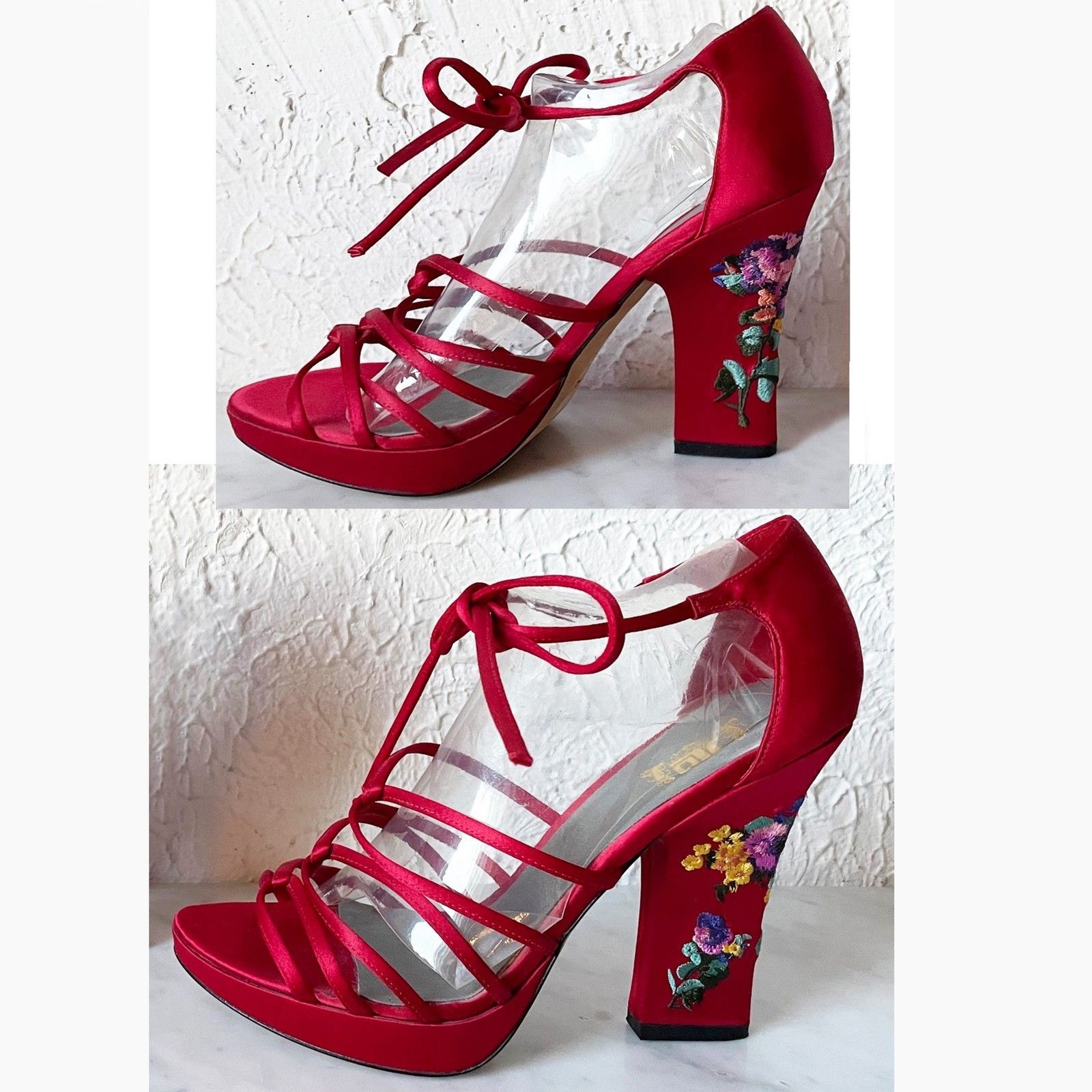 JLo Red Satin Strappy Heels Embroidered and 21 similar items