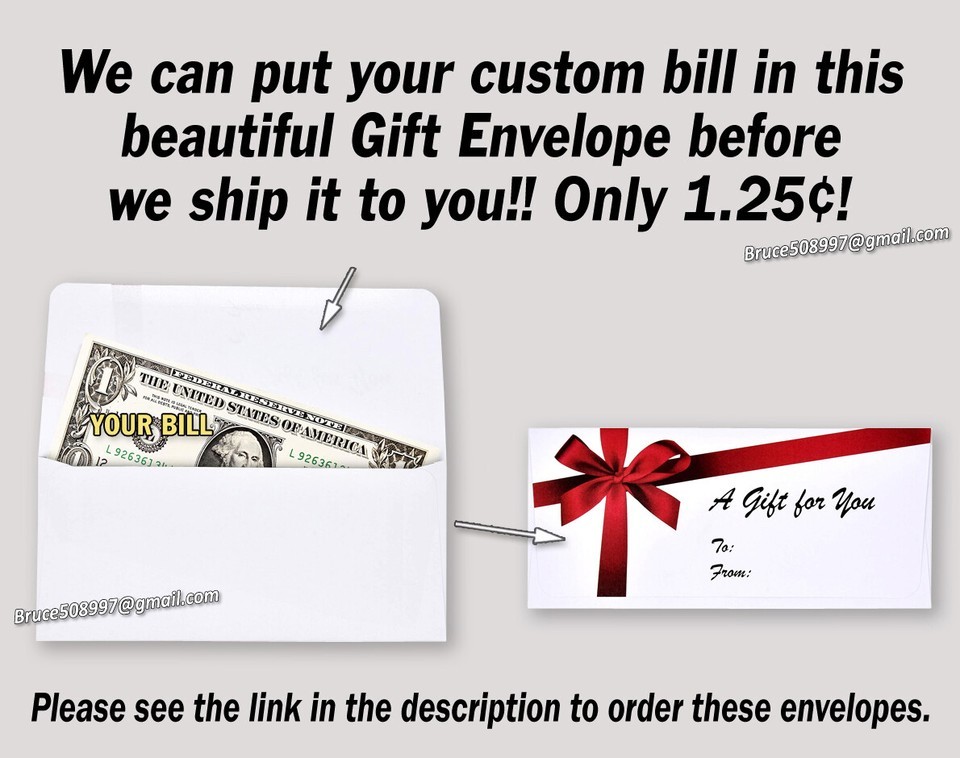 We can place your custom bill in a beautiful Gift Envelope for only $1.25. You can order it here: