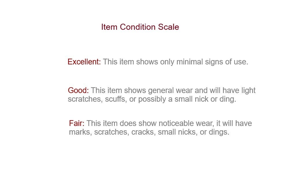 Fair: This Item does show noticeable wear, it will have marks, scratches, cracks, small nicks or dings.???????