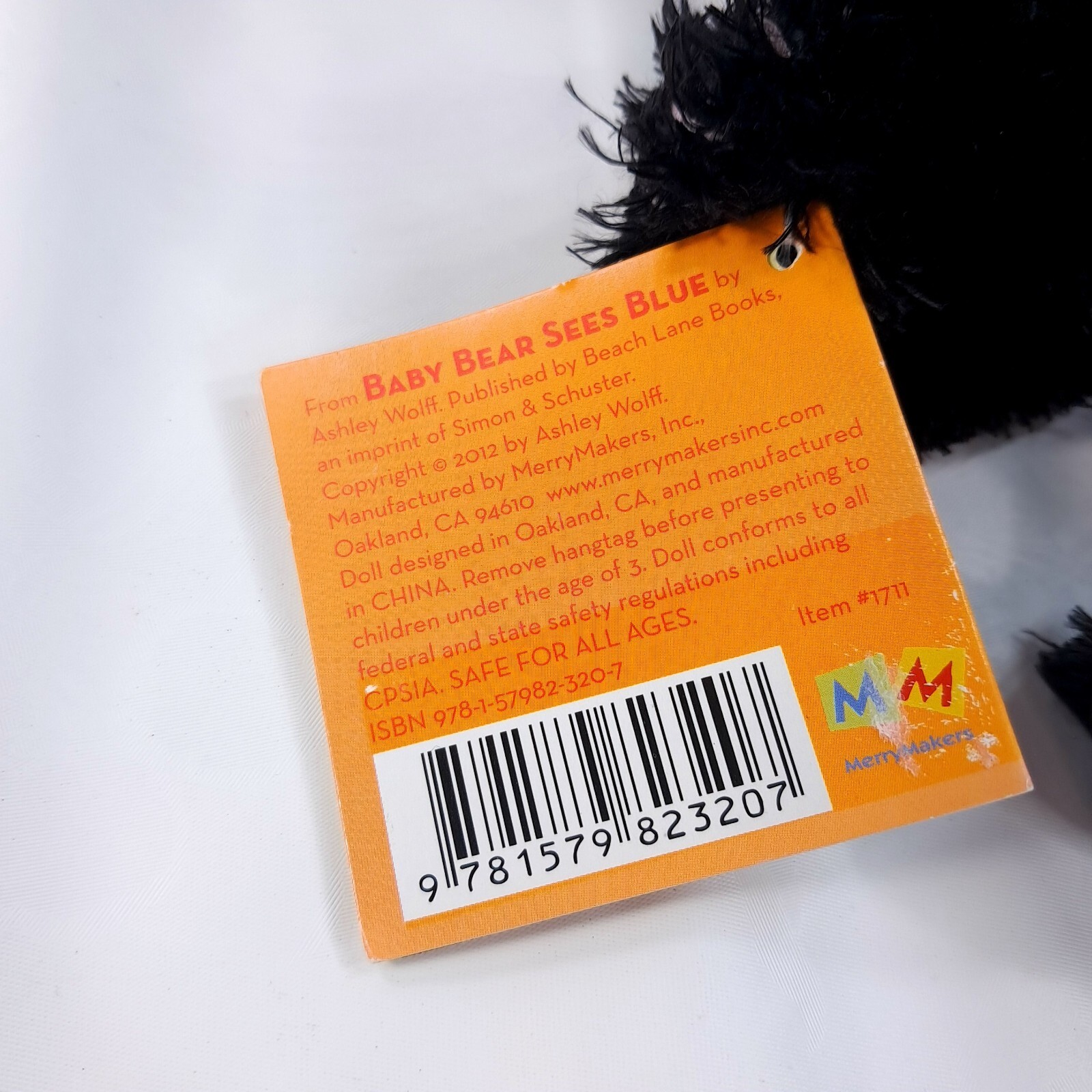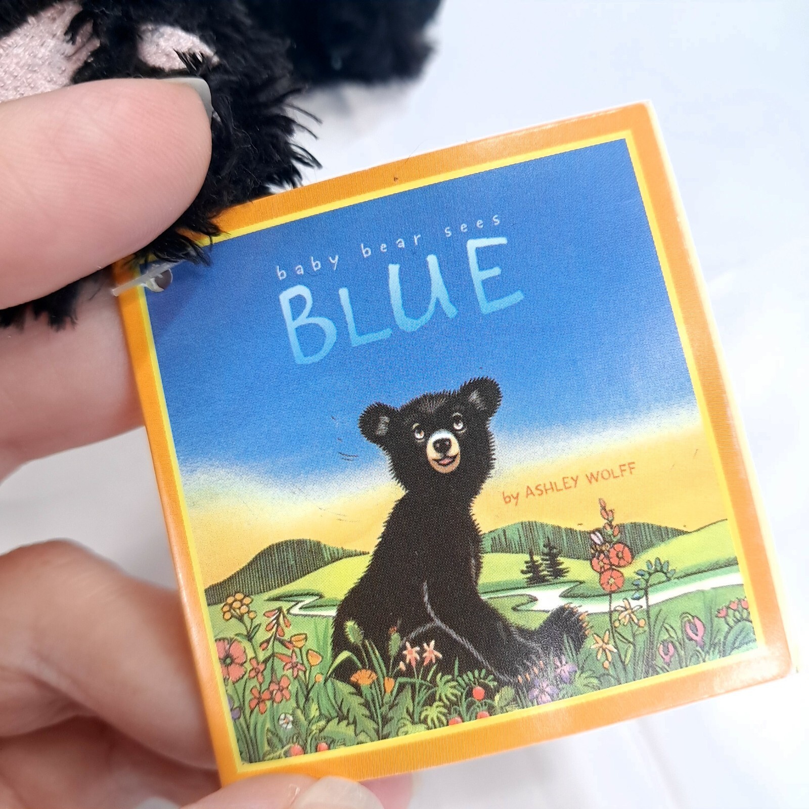 Baby Bear Sees Blue Plush black teddy Ashley Wolff w/ tag from book Merry makers