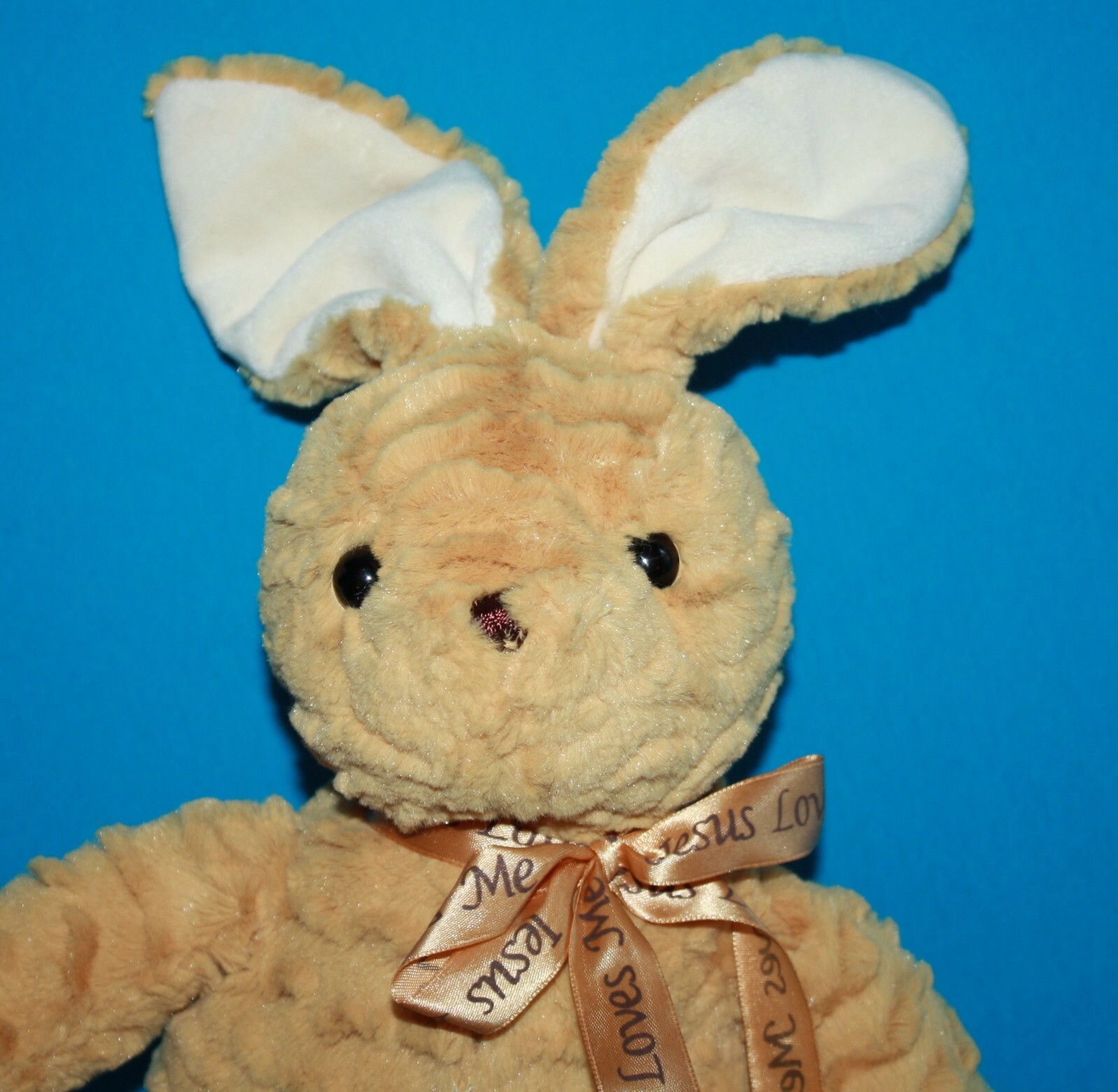 Goffa Jesus Loves Me Easter Bunny Rabbit 13" Tan Plush Stuffed Bow No Carrot Toy