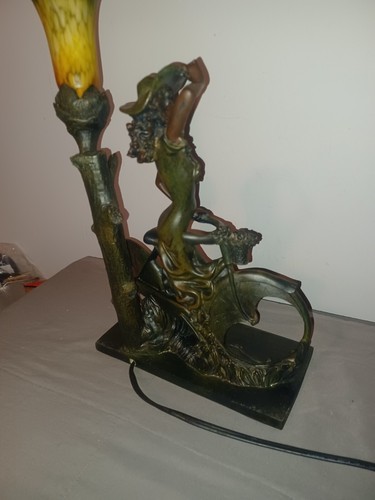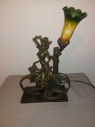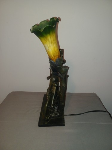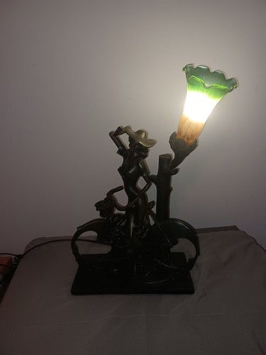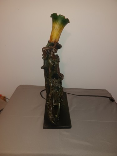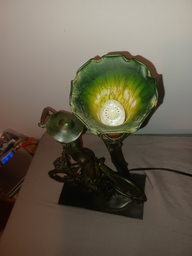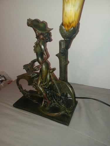 - “Vintage Art Glass Lamp – ‘Springtime Bicycle’ Inspired Bronze Sculpture 19.5”