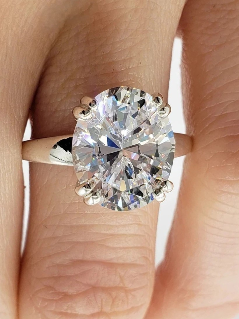 Center Stone: The centerpiece is a oval shape diamond, known for its exceptional sparkle and durability. Diamond is a lab-created that rivals diamonds in brilliance and hardness, making it an excellent choice for an engagement ring.