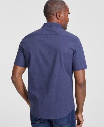 Michael Kors Men's Short Sleeve Button-Front Heathered Shirt Midnight Heather-XL
