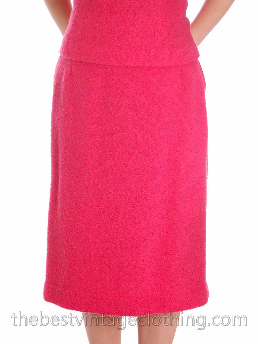 VTG 1950s Maisel-Style Hot Pink Wool Boucle Skirt Suit Pencil Secretary 38-26-38