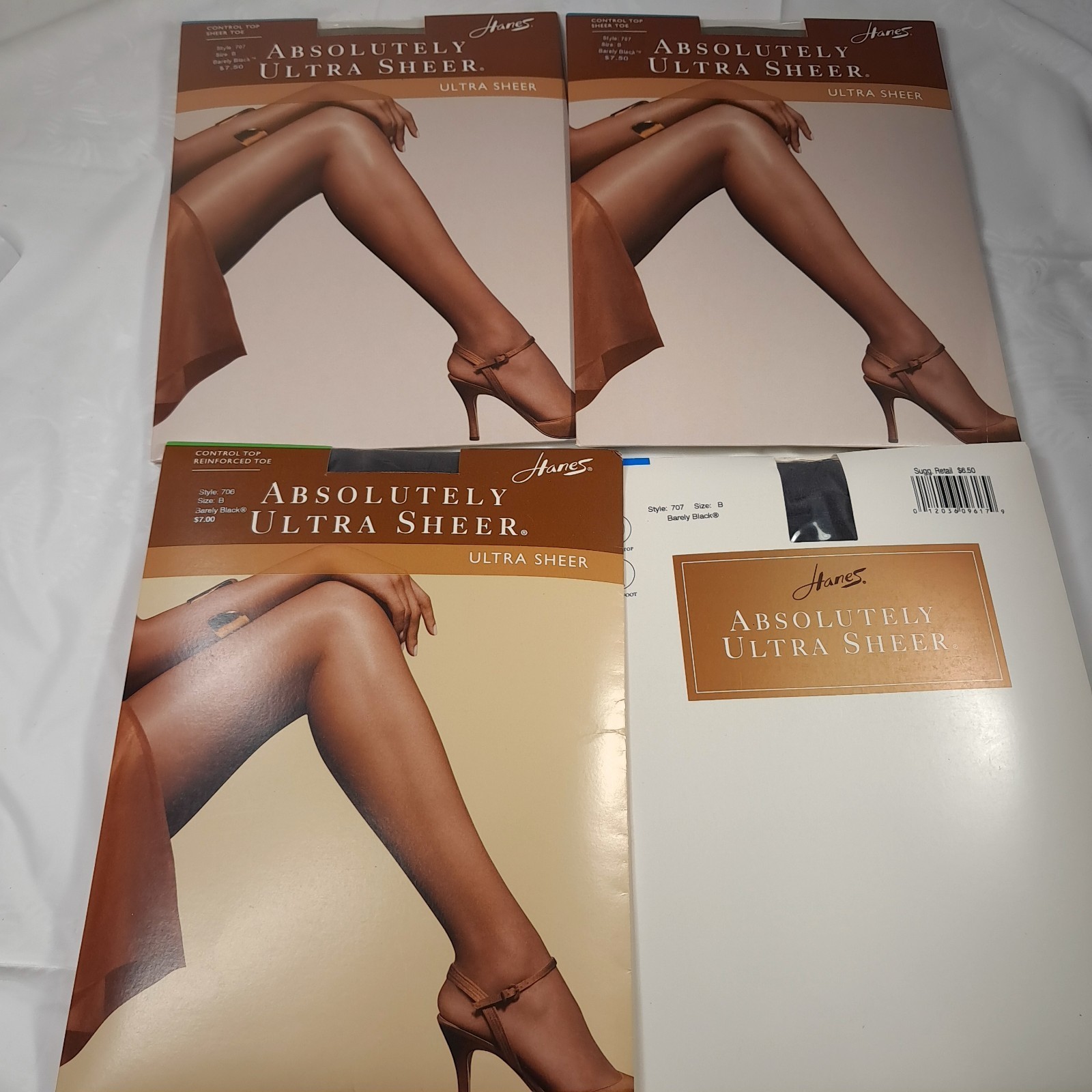 NNEW Hanes set 4 pantyhose size B Absolutely ultra sheer barely black 706 707