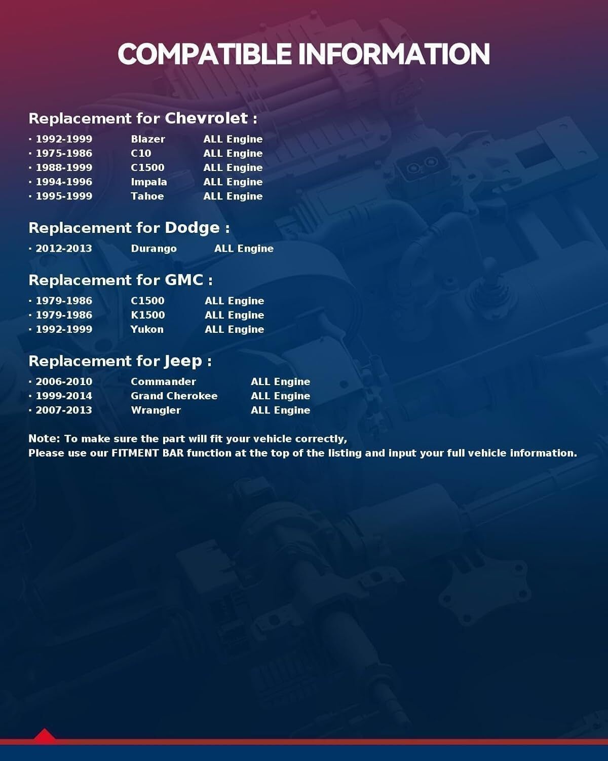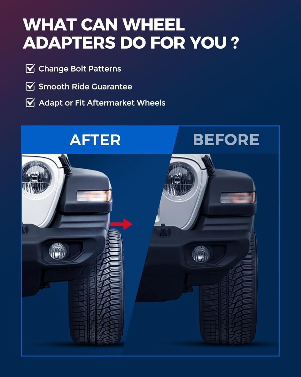 ?KAX Wheel Adapters Parameter : Changes Bolt Pattern || Vehicle Must Be 5x5"(5x127mm) || Wheels Must Be 6x5.5"(6x139.7mm) || M14x1.5 Threaded Studs/Nuts || 2 inch(50.8mm) Thick || 78.1mm Center Bore with NO lip || Recommended torque:85-90 ft/lbs. Package includes 4pcs wheel adapter, 10.9 class split nuts and professional instruction manual ?Compatibility : 5x5 to 6x5.5 Wheel adapters 2 inch are compatible with 1999-2014 Grand Cherokee; 2007-2013 Wrangler; 1988-1999 C1500; 1995-1999 Tahoe; 1975-1986 C10; 2006-2010 Commander; 1992-1999 Blazer; Yukon; 2012-2013 Durango; 1979-1986 C1500; K1500; 1994-1996 Impala ?Newest Forging Technology : 5x5 to 6x5.5 hub centric wheel adapters are truly forged from aircraft quality 6061-T6 aluminum. You can imagine how exacting the craft of aircraft manufacture is! So it is with adapter. Coupled with SGS certified 10.9 grades high strength bolts, regardless of the cold wind and heat, the adapter will not fall off and break ?Why Install Wheel Adapters: 5x5 to 6x5.5 wheel adapters are used to change bolt patterns in order to properly fit wheels from one vehicle to the hub of a different vehicle. And 2 inch wheel adapter can account for offset, push the wheels out further. ?Warm Reminder : Even if a vehicle is listed as being compatible, buyers still need to check: 1) You have more than 2 inch of space between your fender and your wheel/tire; 2) Your factory wheel studs are shorter than 2 inch (NOTE: * When installing a bolt on wheel spacer or adapter, trimming the studs will be necessary when the spacer or adapter plate is thinner than your wheel studs are long.)