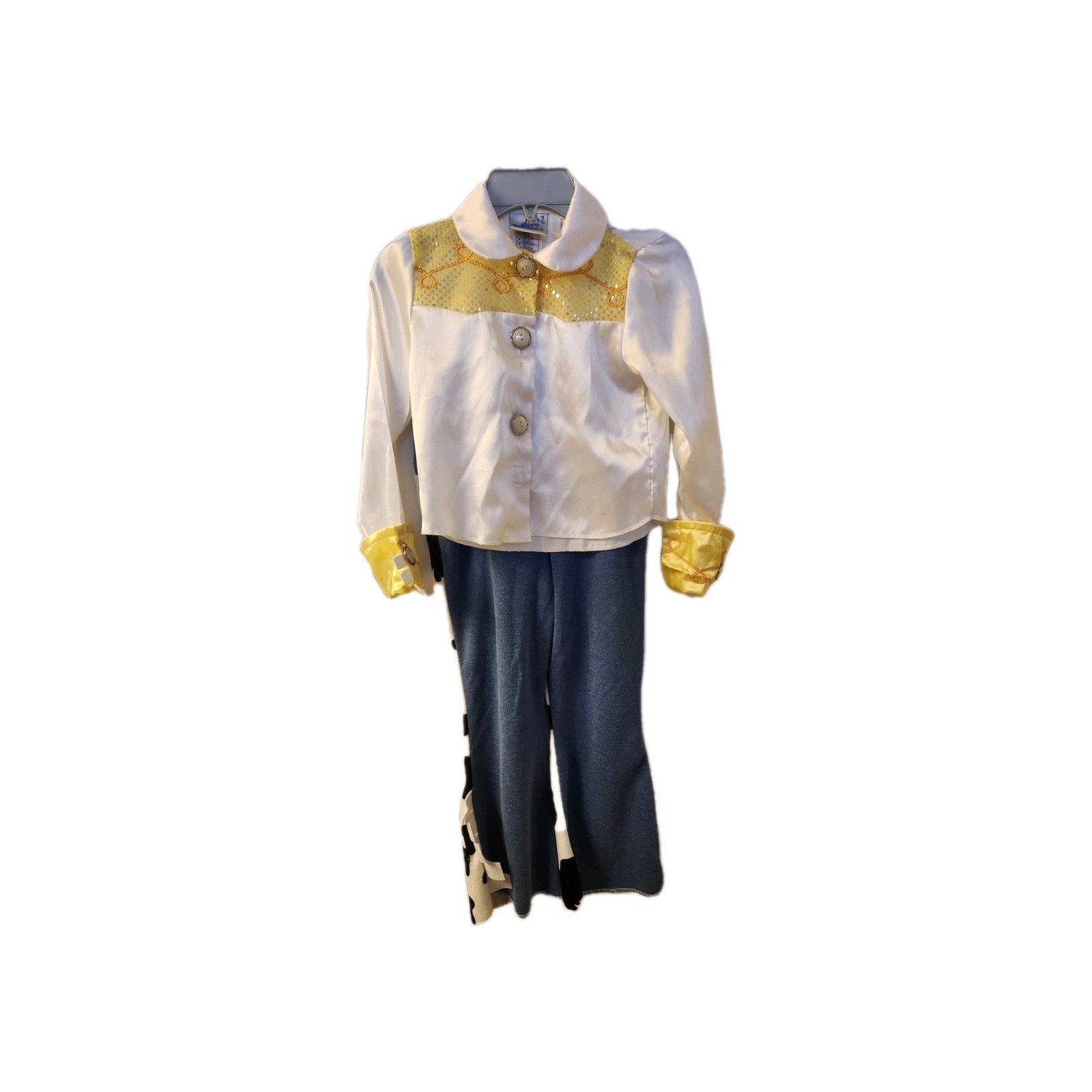 The product is a Disney Parks Toy Story "Jessie" girls' costume in size small (5/6). Made of polyester, this dress-up costume features a design inspired by the Toy Story theme, allowing young fans to transform into their favorite cowgirl character from the popular animated movie franchise. Perfect for costume parties, events, or playtime at home, this costume embodies the spirit of Disney's beloved characters and offers a fun and imaginative play experience for children.
