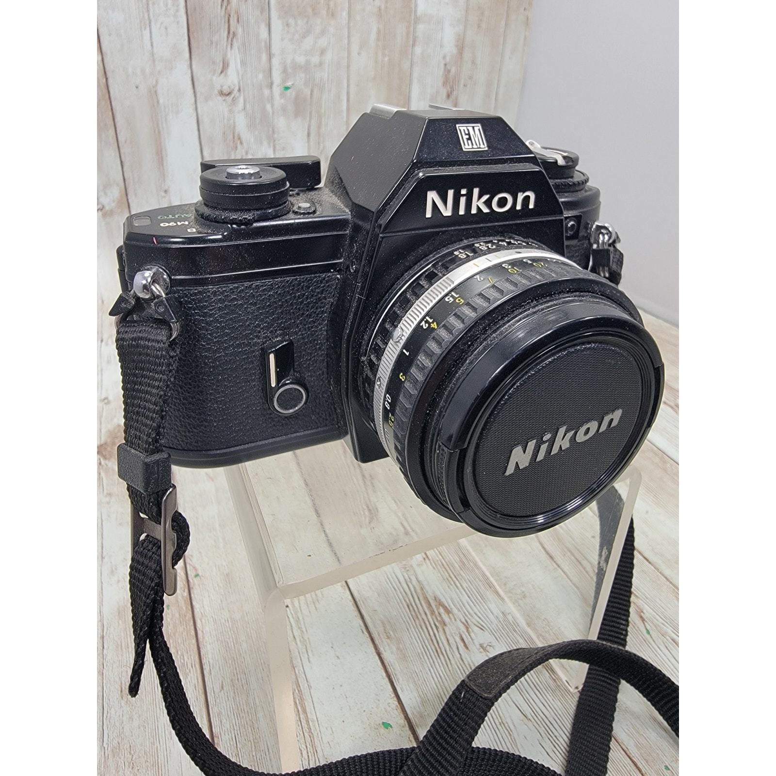 Nikon EM 35mm SLR film camera with Nikon Series E 50mm f/1.8 lens