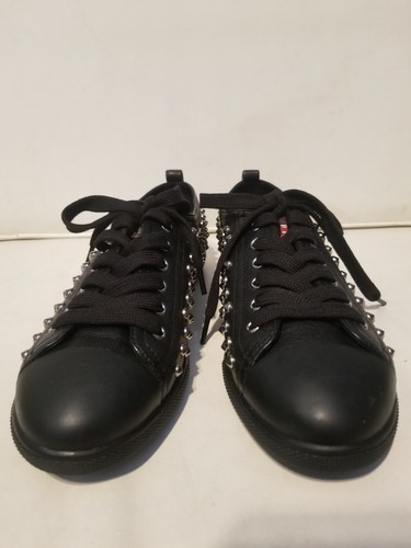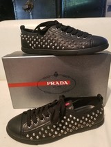 Prada Nappa Borchie Nero Sneakers Cap Toe Tennis Shoes Trainers 37 Studs Leather