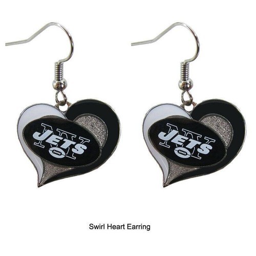New* New York Jets NFL Silver Swirl Heart Dangle Earrings Non-Allergenic Aaron