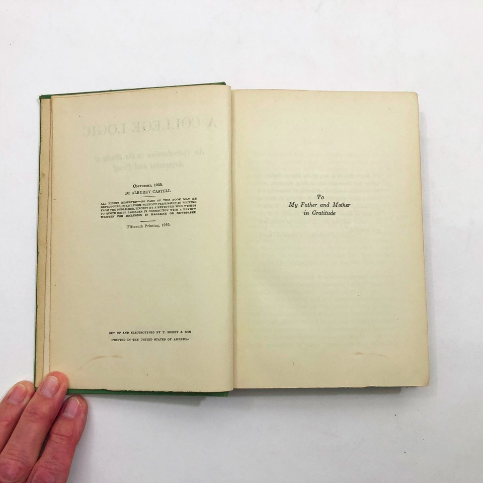 A College Logic Alburey Castell 15th Printing 392 Pages 1950