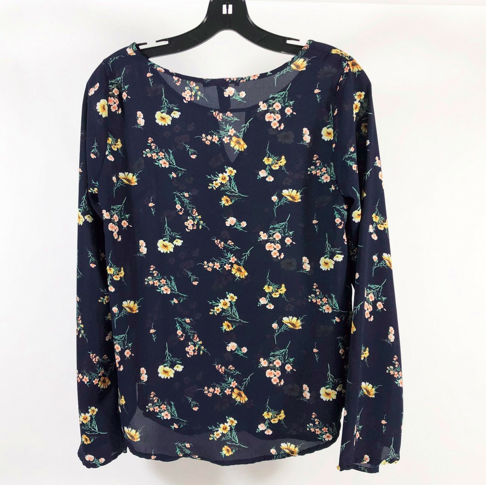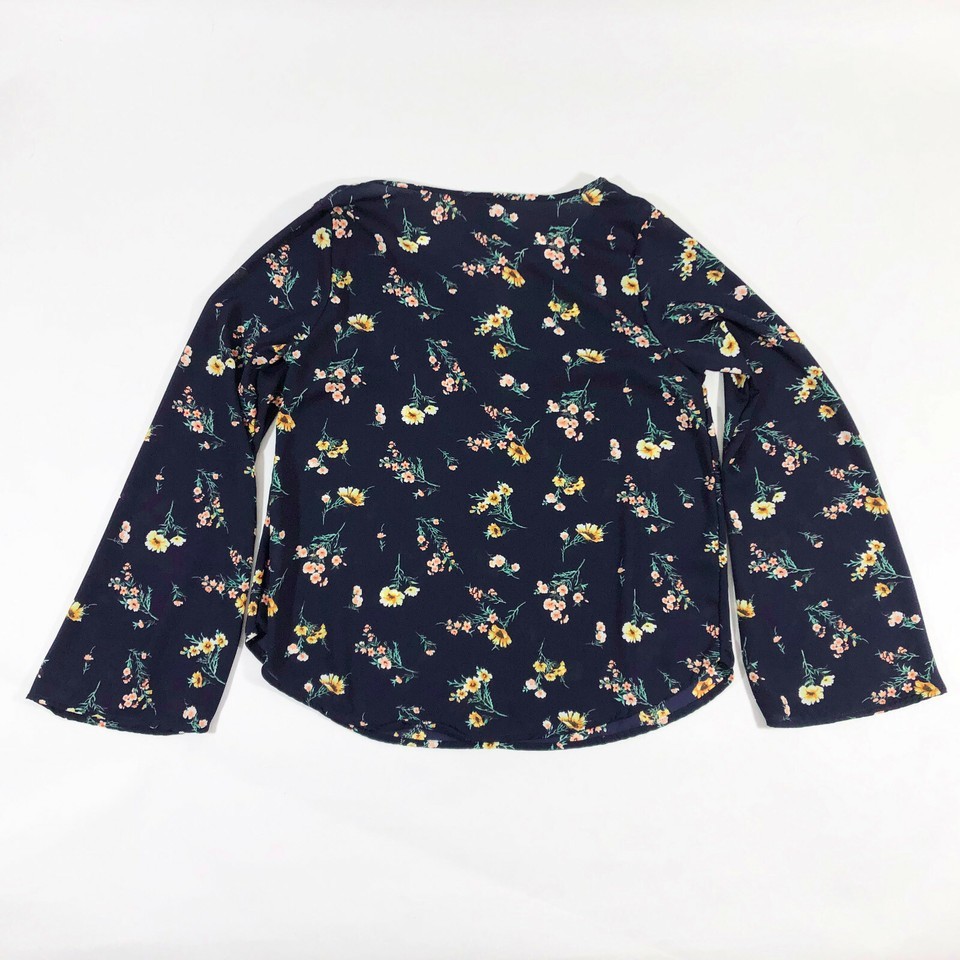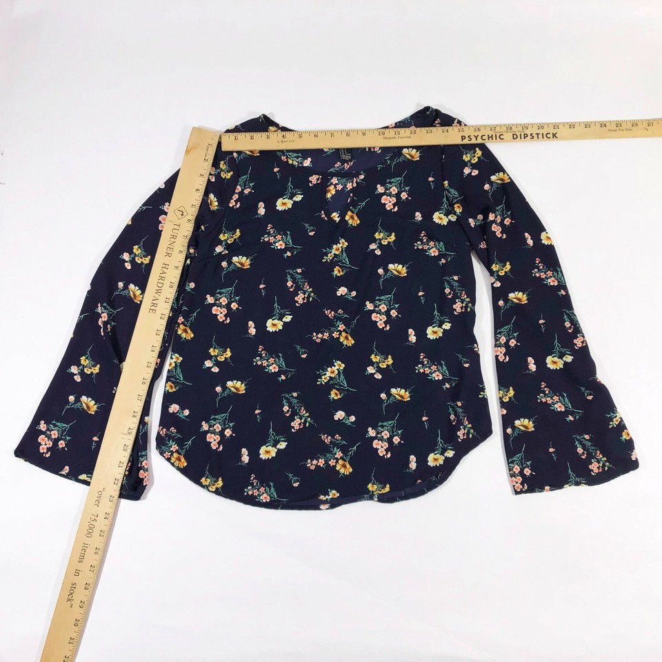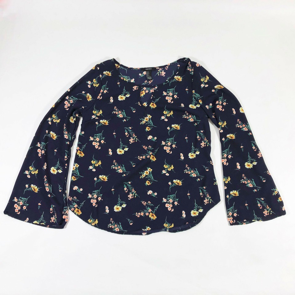 Forever 21 Women's Navy Floral Flare Sleeve Blouse Wms Size Small