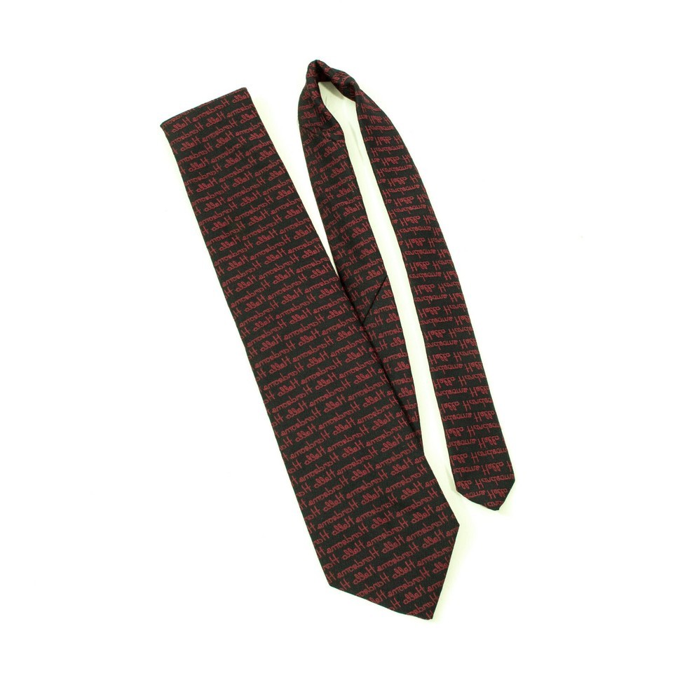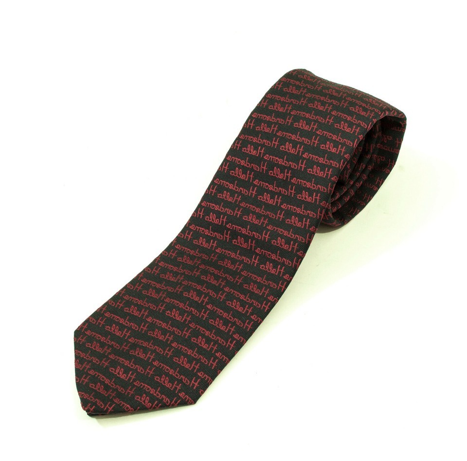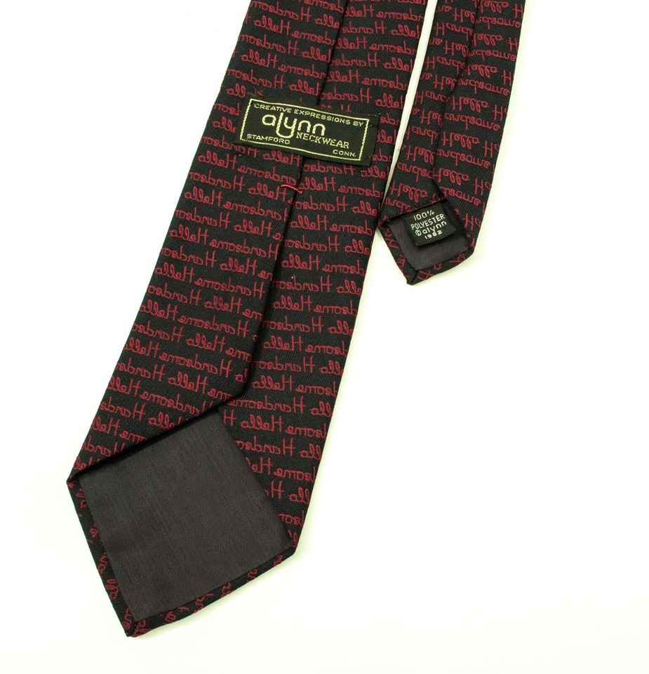 EUC, Creative Expressions by Alynn Neckwear Stamform Conn. 54 inch polyester black tie with a creative pattern of printed alleH emosbmdH in small burgundy script. Perfect for a conservative dress style.