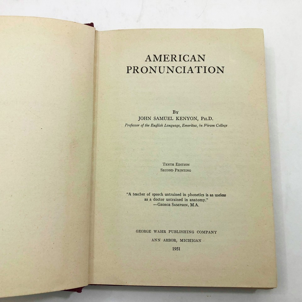 American Pronunciation John Samuel Kenyon HB 10th Edition 2nd Printing 1951