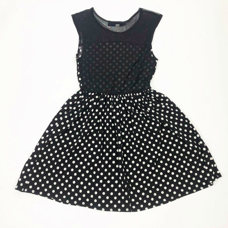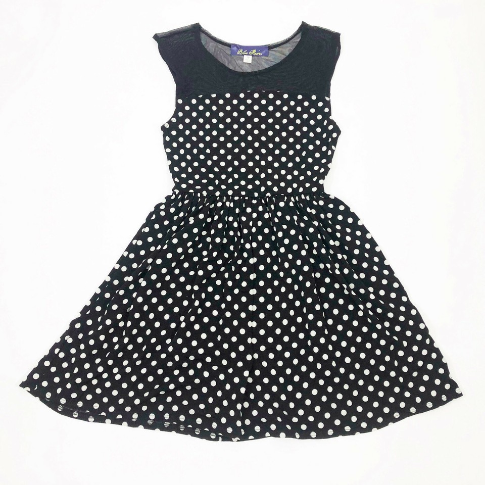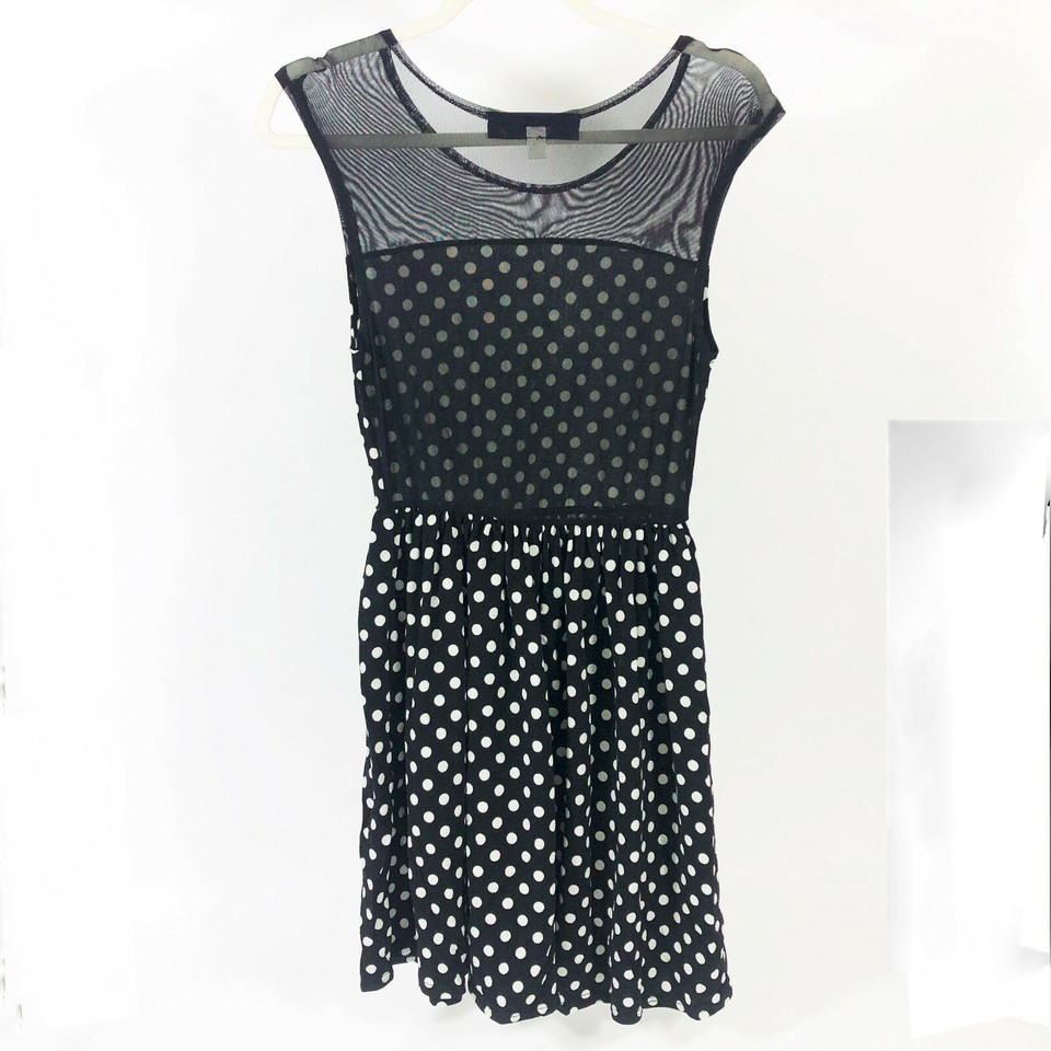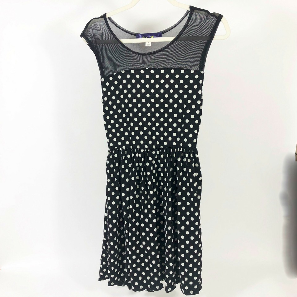 Blue Rain Black and White Polka Dot Dress with See Through Back Wms Medium