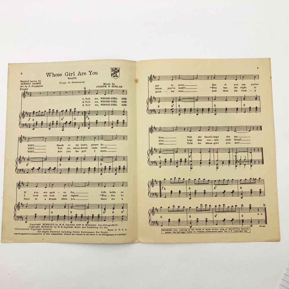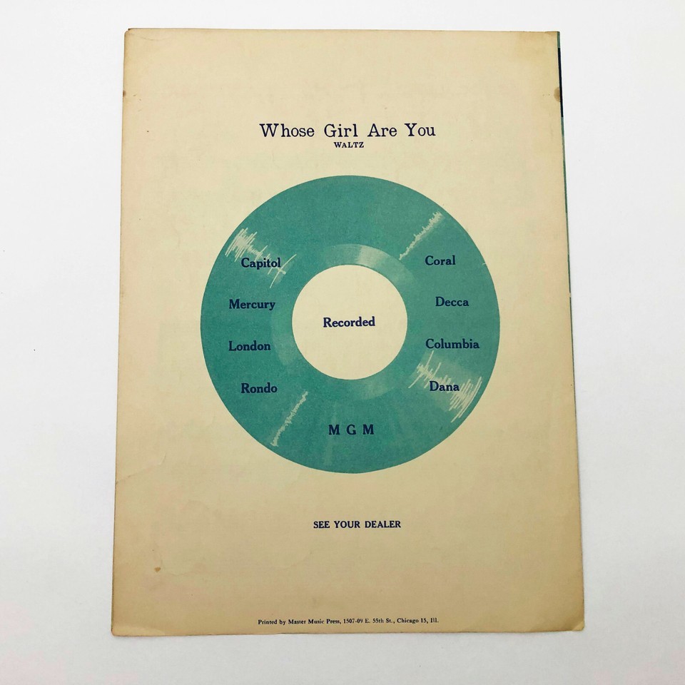 Whose Girl Are You Vintage Sheet Music Blue Barron Orchestra Waltz 1947