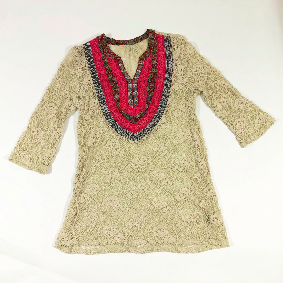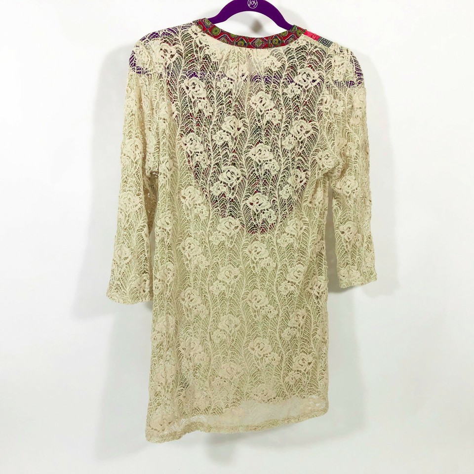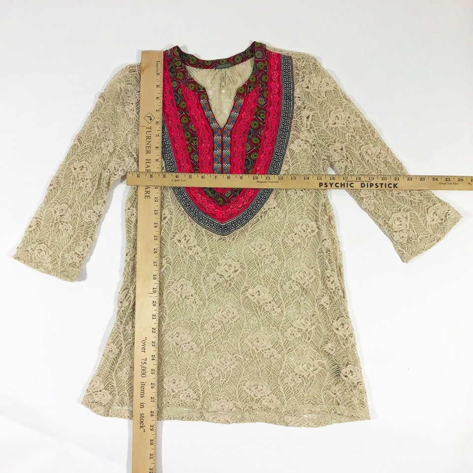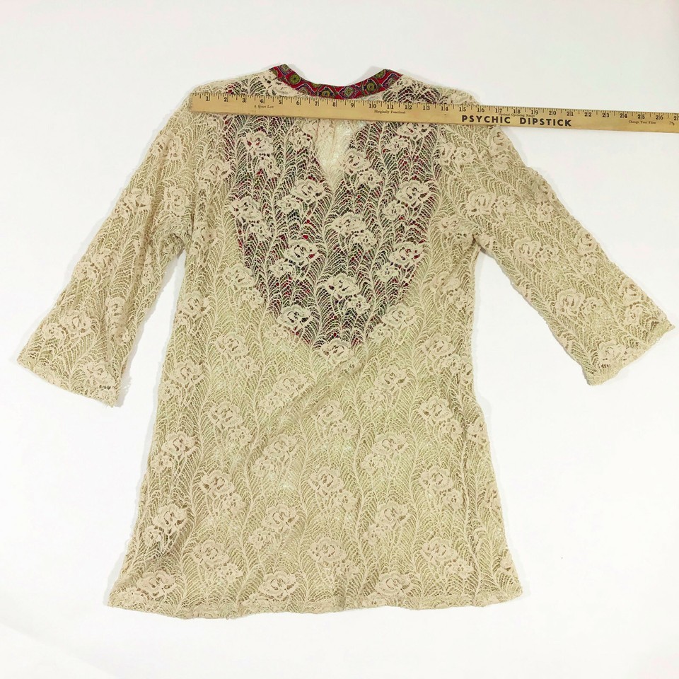 Gimmicks by BKE Cream Crochet and Embroidery Boho Top Wms Small