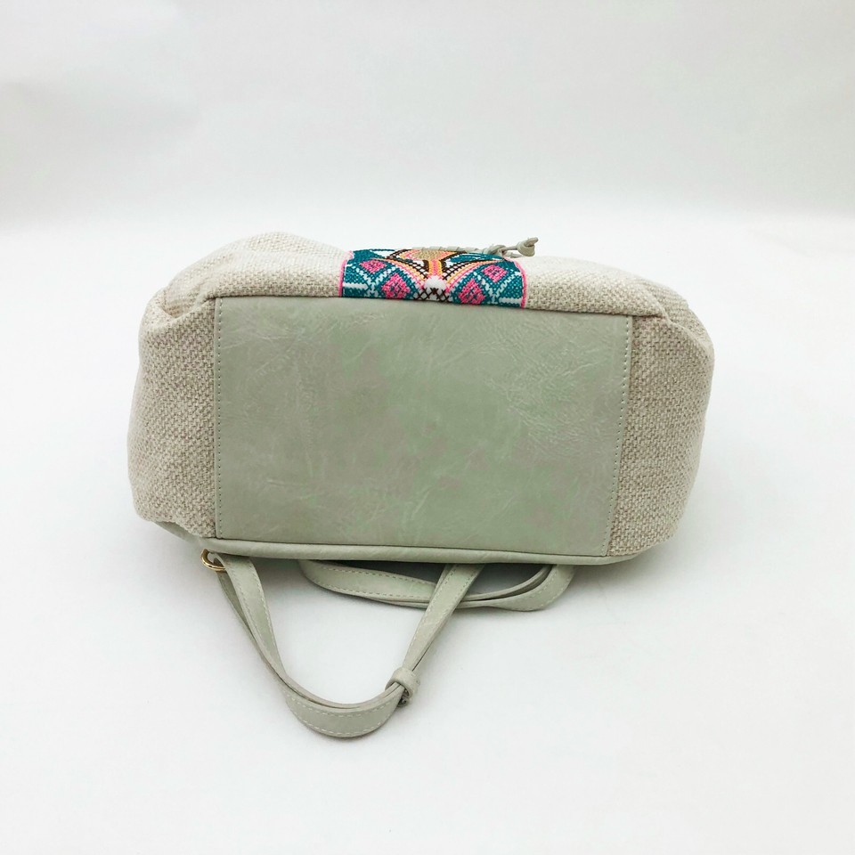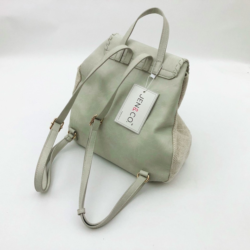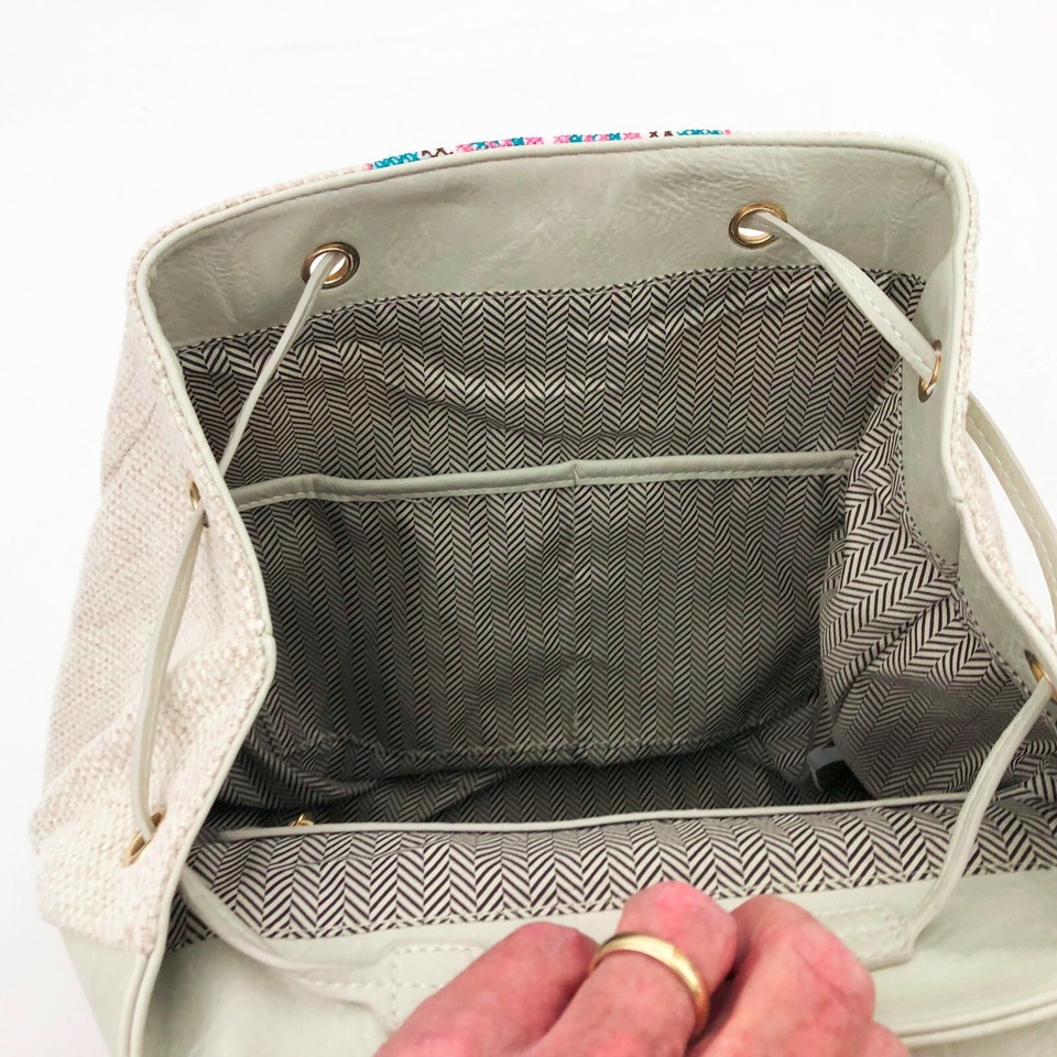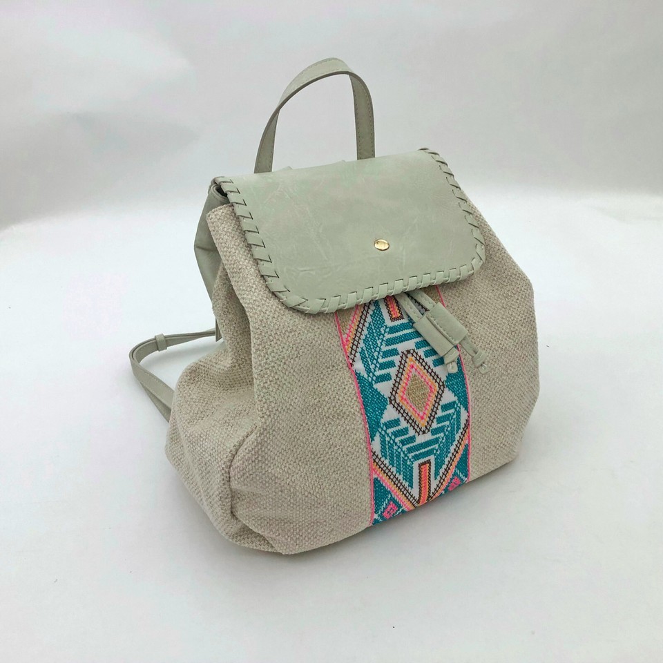 Jen & Co. Tribal Back Pack Vegan Leather Embroidered Woven Pattern Ivory Cream