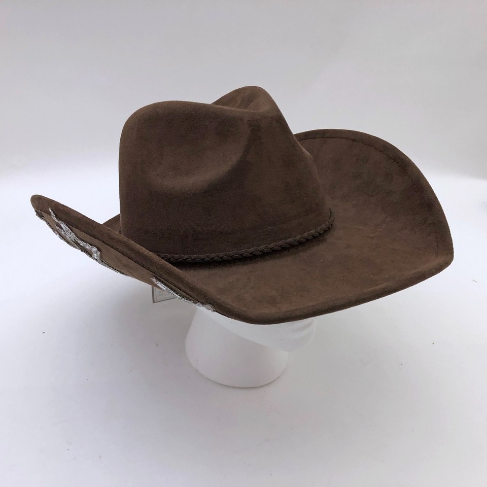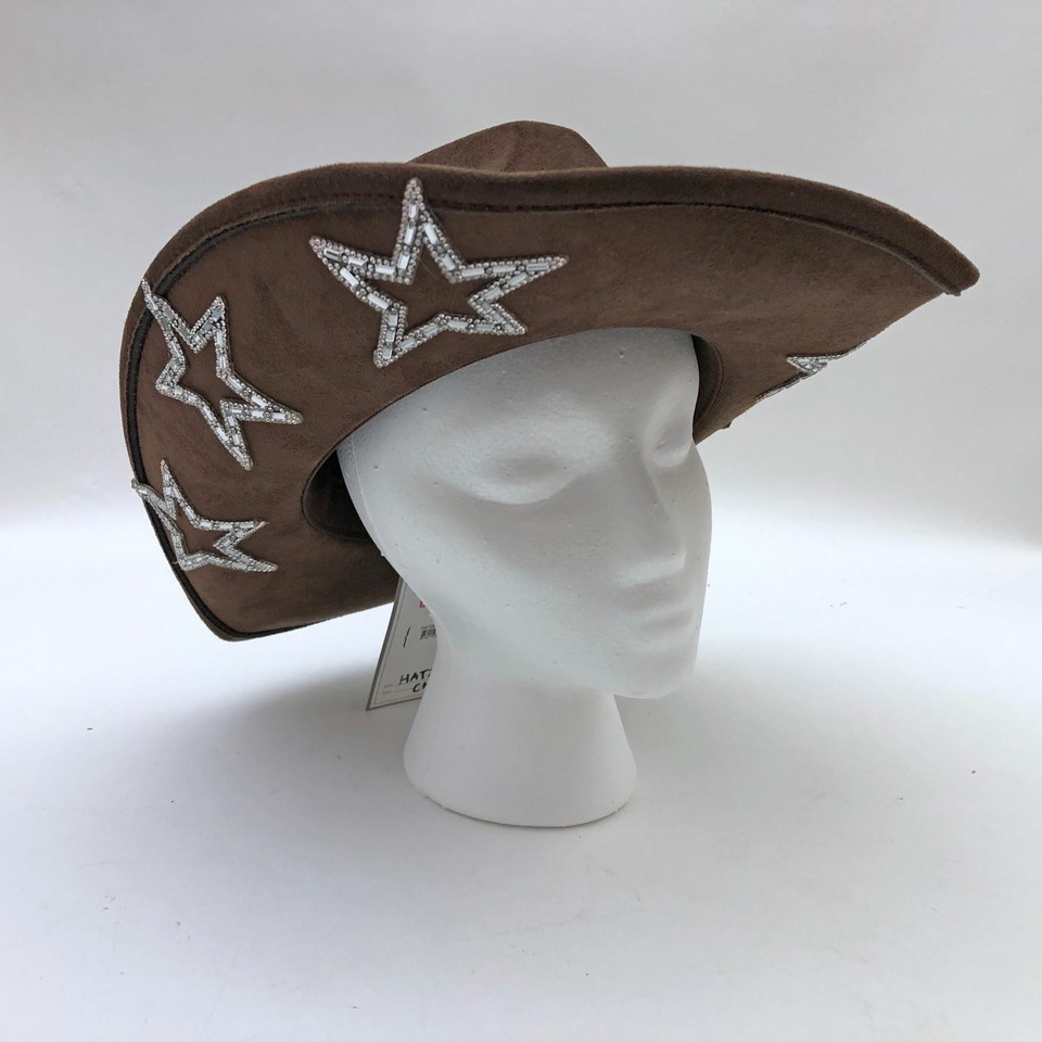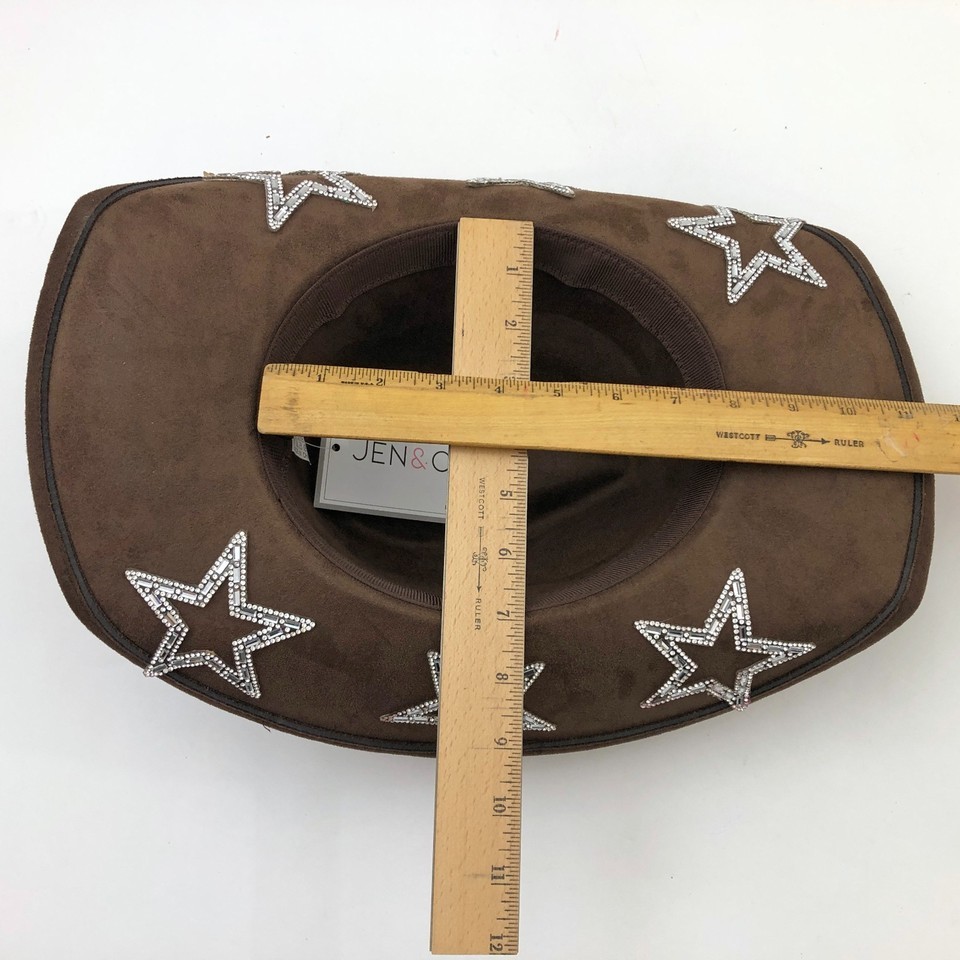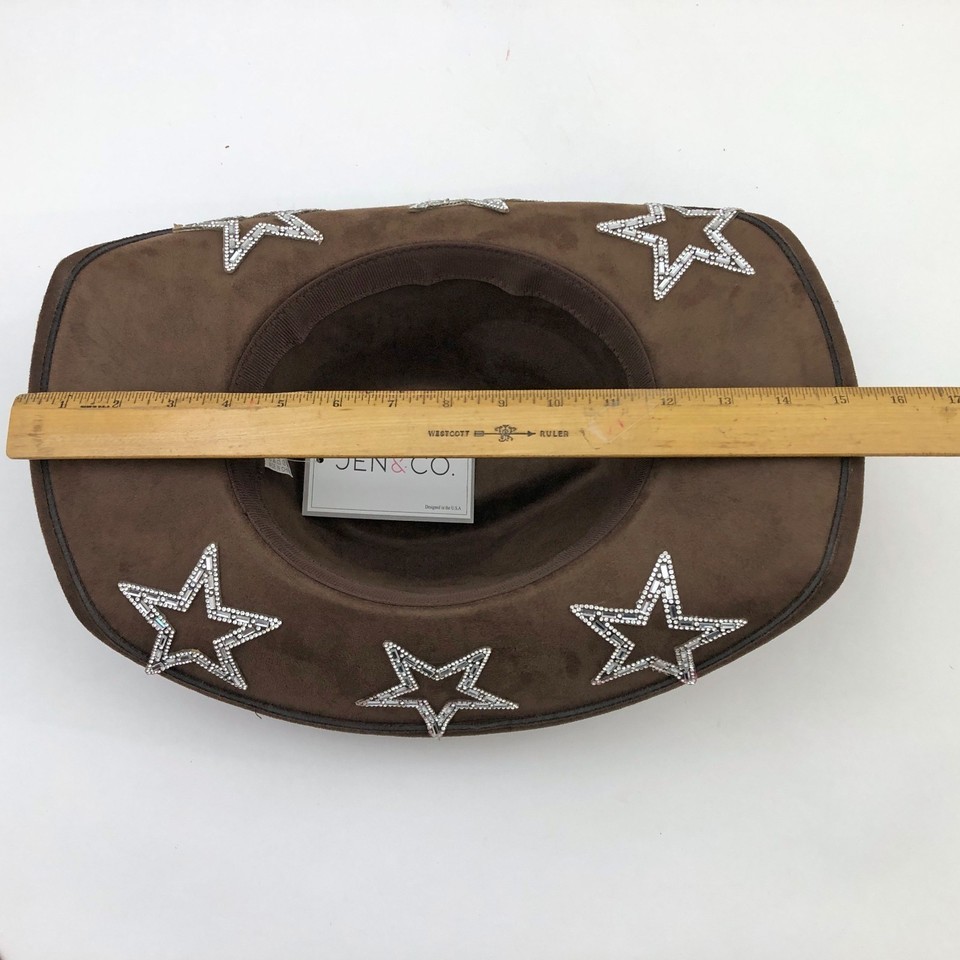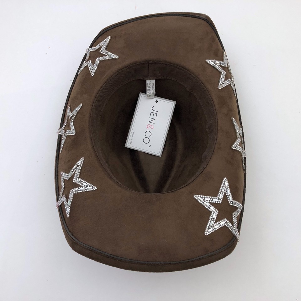 Jen & Co. Tabitha Star Cowboy Hat Brown Rhinestone Stars Faux Suede Finish GLAM