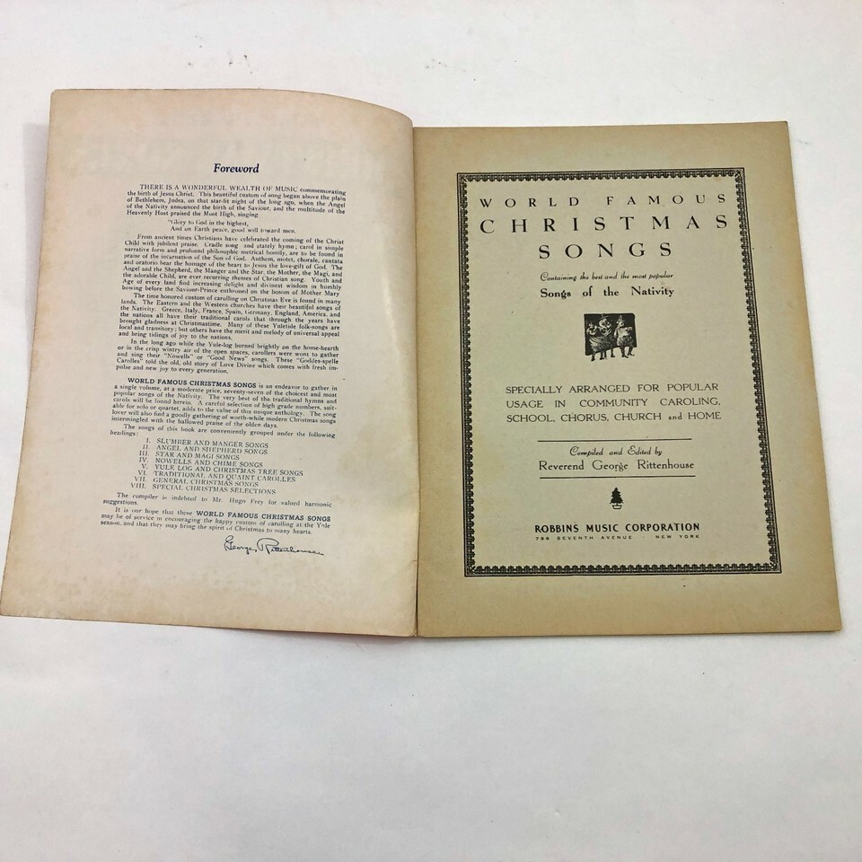 World Famous Christmas Songs of the Nativity Reverend G. Rittenhouse 1929